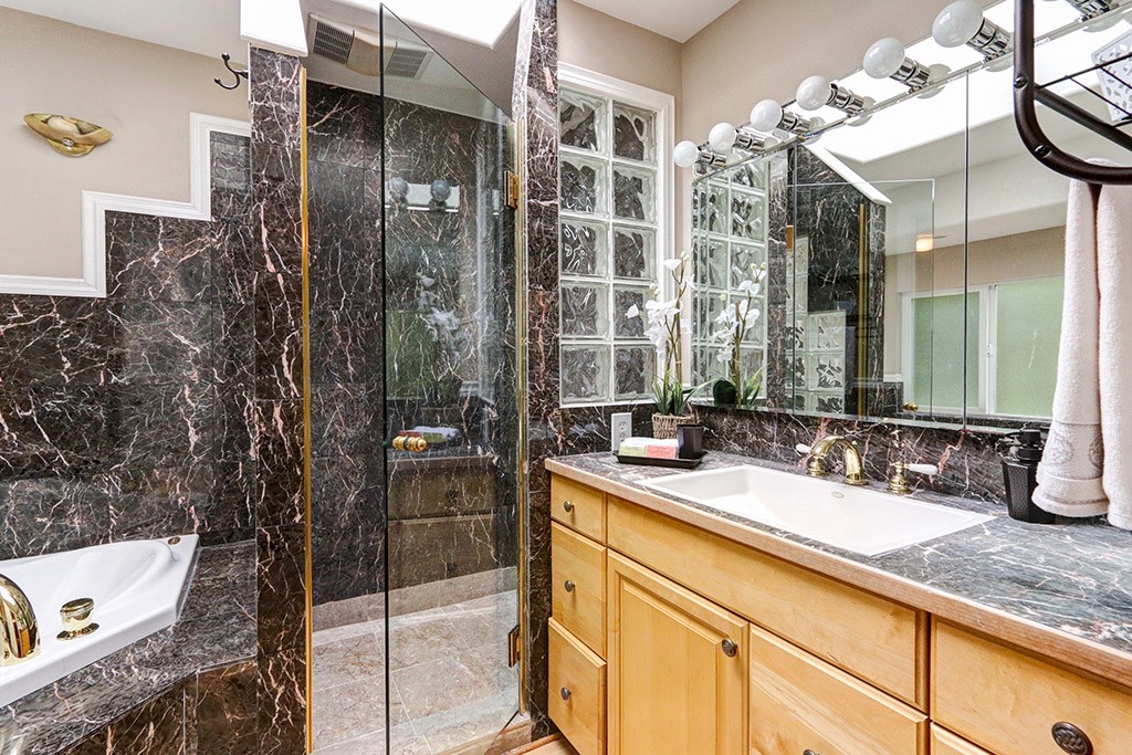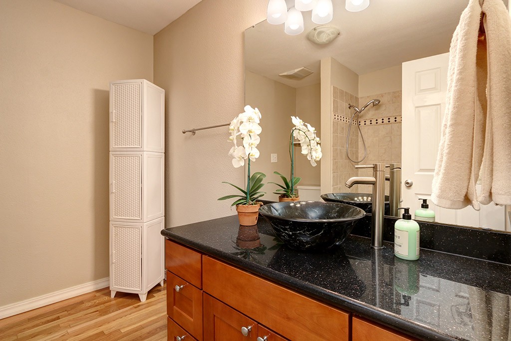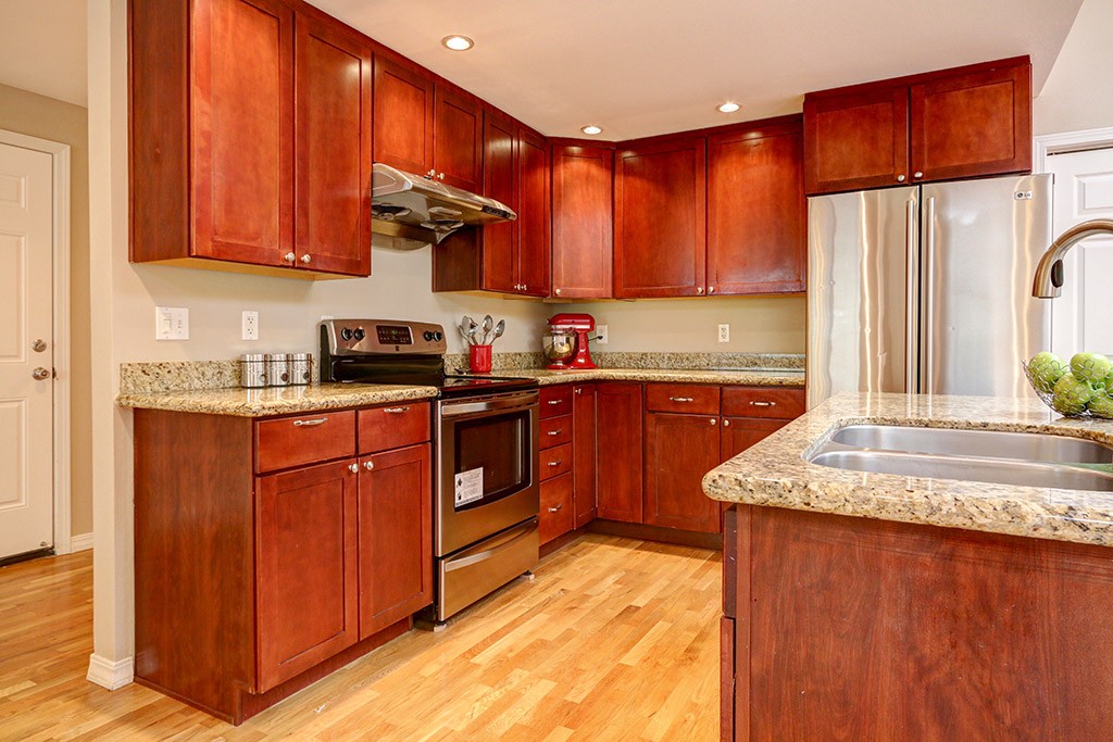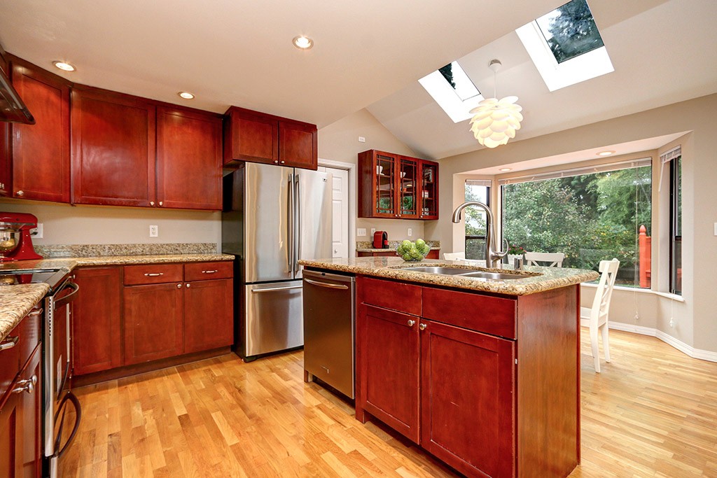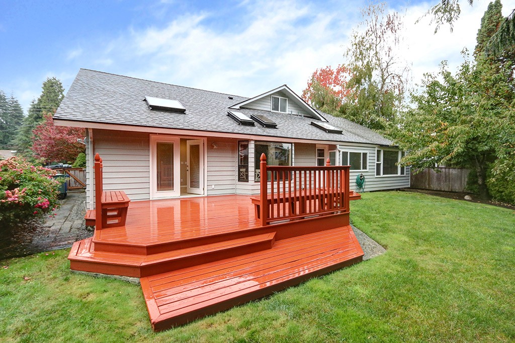 Remodeled & inviting large home near Microsoft & freeways.Open plan including 3 bed/2bath on the main floor.Upstairs:guest suite,bonus & small office.Generous rooms w/large new windows.Spacious living room greets you as you enter.Open island kitchen w/granite slab counters,breakfast nook w/skylight,adjacent to family & dining rooms,French doors lead to entertaining size deck in a beautifully landscaped,level & fenced back yard.Freshly painted,hardwood floors,remodeled bathrooms.Bellevue schools.