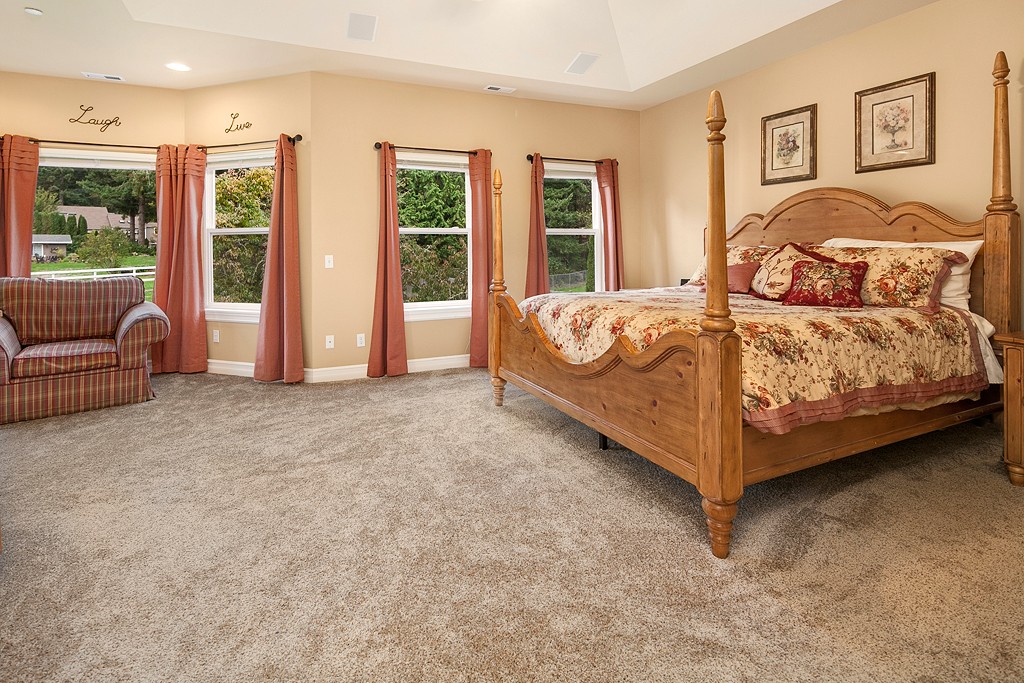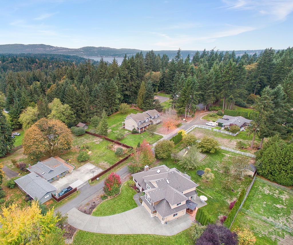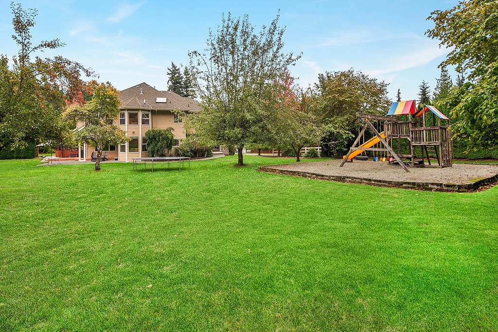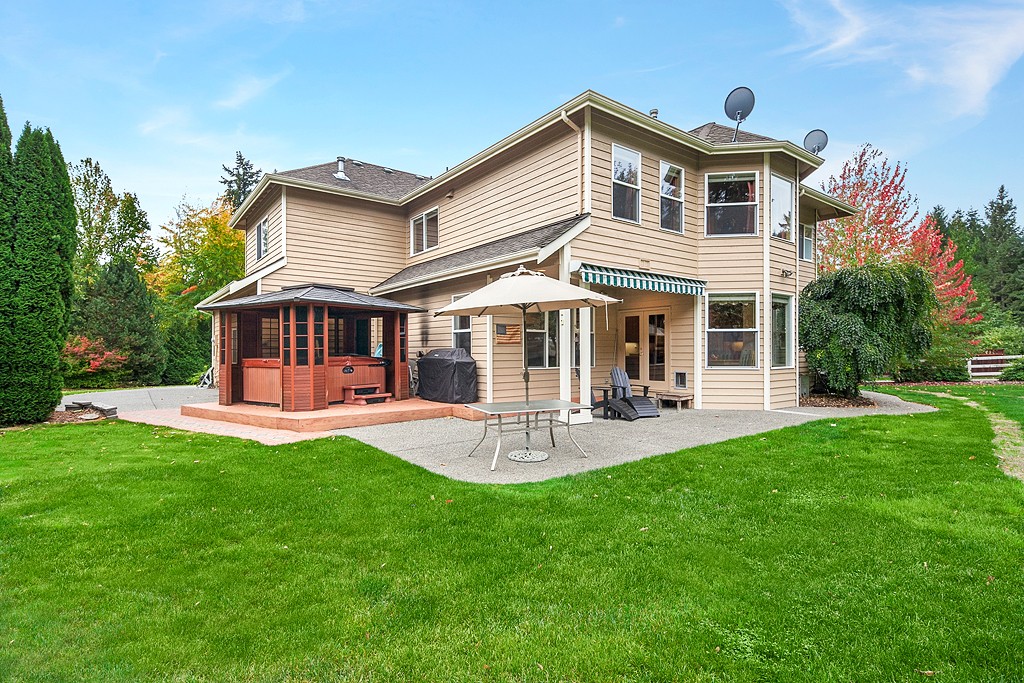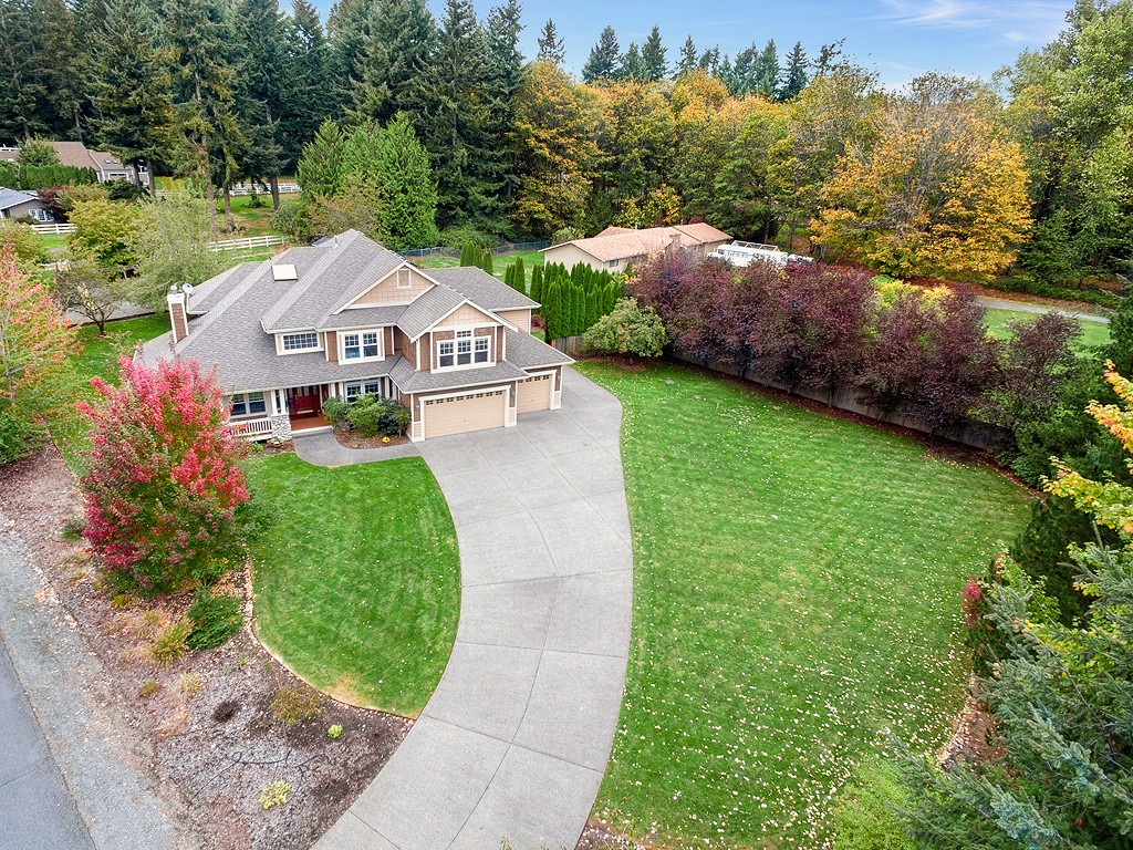 Welcome home to this classically styled five bedrooms+bonus+den home with Northwest flair. On over an acre of flat, usable land with open views, there’s plenty of room for outdoor fun. Paved space for RV or boat and no CC&Rs. Timeless cherry cabinets and huge island make the kitchen truly the center for gatherings. River rock accented fireplaces, lush carpet, warm neutral paint. Built in sound system, AC, central vacuum, dual system furnace/water heaters. Shed, play set, and hot tub with gazebo.