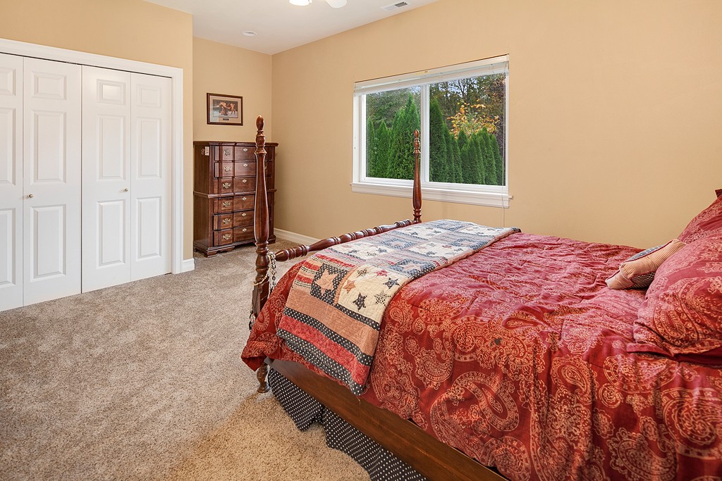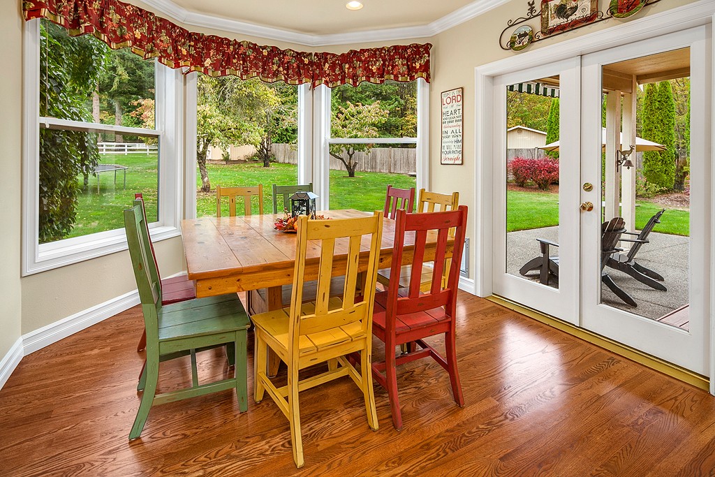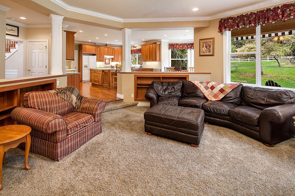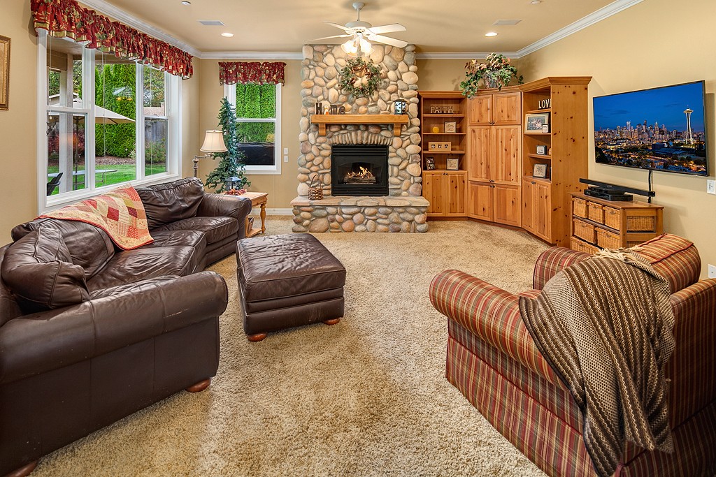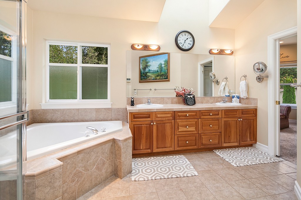 Welcome home to this classically styled five bedrooms+bonus+den home with Northwest flair. On over an acre of flat, usable land with open views, there’s plenty of room for outdoor fun. Paved space for RV or boat and no CC&Rs. Timeless cherry cabinets and huge island make the kitchen truly the center for gatherings. River rock accented fireplaces, lush carpet, warm neutral paint. Built in sound system, AC, central vacuum, dual system furnace/water heaters. Shed, play set, and hot tub with gazebo.