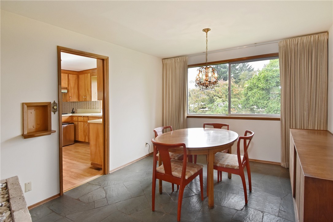 First time on the market! Wonderful mid-century rambler on quiet dead-end street in Edmonds on nice lot. Slate entry leading to open floor plan includes light-filled sunken living room with dramatic ceiling, formal dining room, kitchen with eating space + cozy family room & some hardwoods. Utility room off family room w/half bath leading to garage. Peek-a-boo view from back of home. Close to downtown Edmonds - beach, shopping, public market, dining, etc. Meet your friends for coffee and enjoy.
