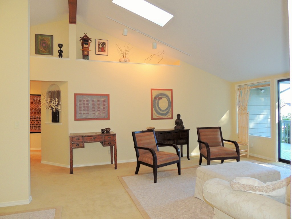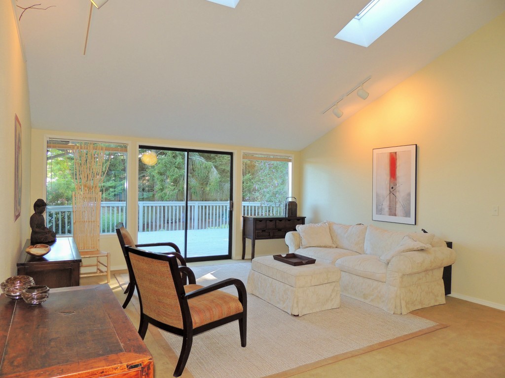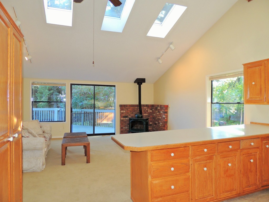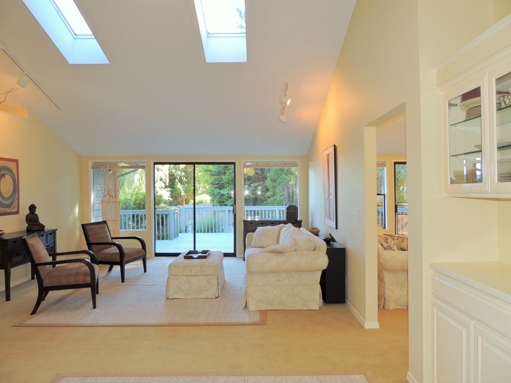 Enjoy this spacious light filled home with vaulted ceilings, skylights, and cooks kitchen that opens to family room with slider to large deck and private brick patio & garden. New carpet & paint. Well located at end of dead in street in the desirable community of Shelter Bay. Shelter Bay amenities include golf, swim, tennis, beach & marina - boat moorage available. Just over the Rainbow Bridge from the charming waterfront town of La Conner.