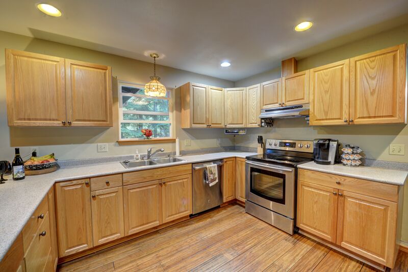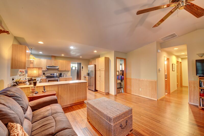 GREAT PRICE! 4BD/2BA, 1664sf home surrounded by nature and low maintenance grounds. A unique design with total living area over a large 2 car garage + work space. Hardwood bamboo flooring, large open living, dining and kitchen with all appliances. Cabinet's galore! Zero clearance fireplace. Master has separate entrance and walk in closet. Enjoy the covered deck year round with a private view of wildlife. The Sudden Valley community amenities include: pool, beaches, marina, golf, tennis and more