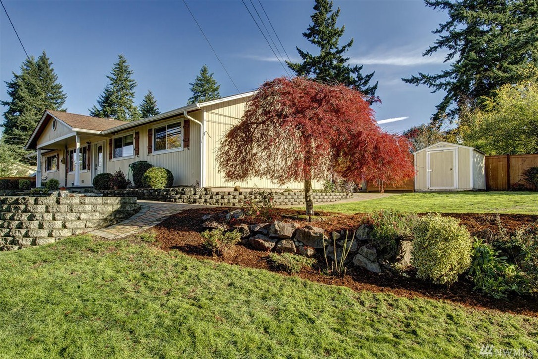 Beautiful 4 bedroom, 2.75 bath rambler with over 1800 sq ft of living space in the Finn Hill neighborhood of Kirkland. Updated kitchen w/ quartz countertops, ss appliances & gas range. Dining room with vaulted ceilings and access to patio in the backyard. Master bedroom down the hall with vaulted ceilings, walk-in closet & bath with walk-in shower. Rec room with on-suite bath could be 2nd master. Fully fenced backyard, garden shed, security system - all within walking distance to local schools.