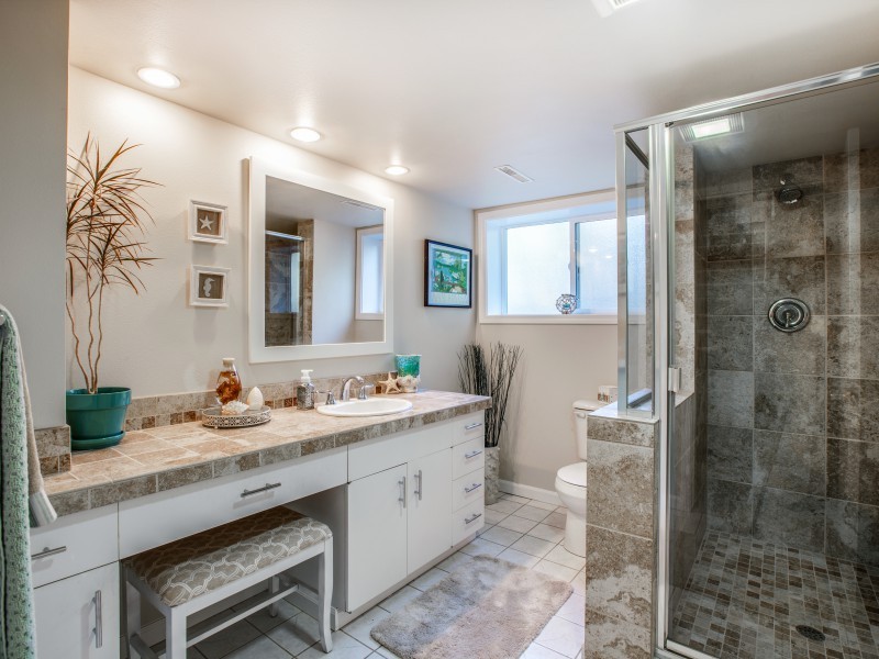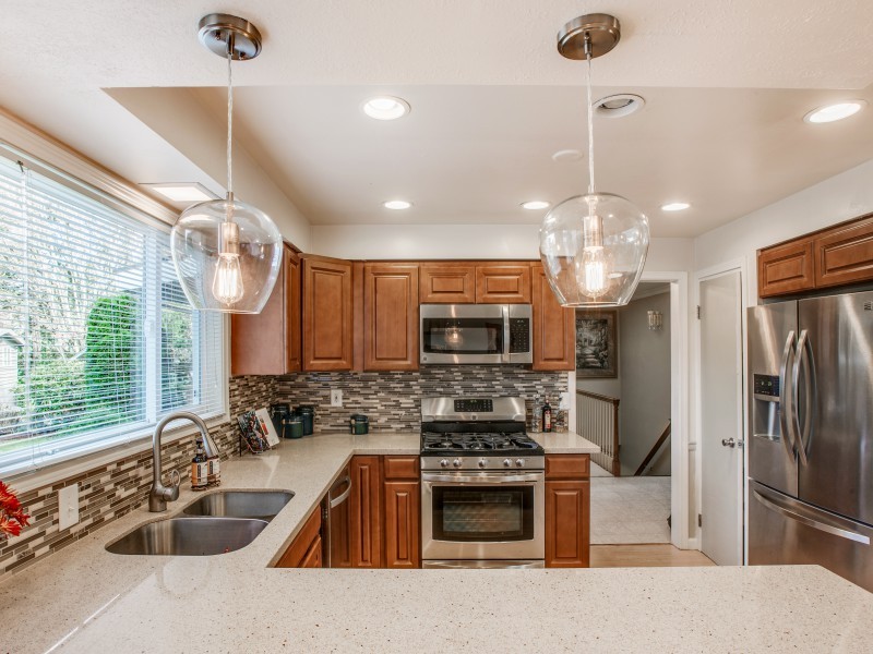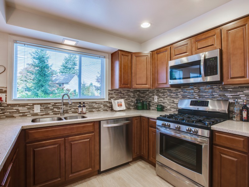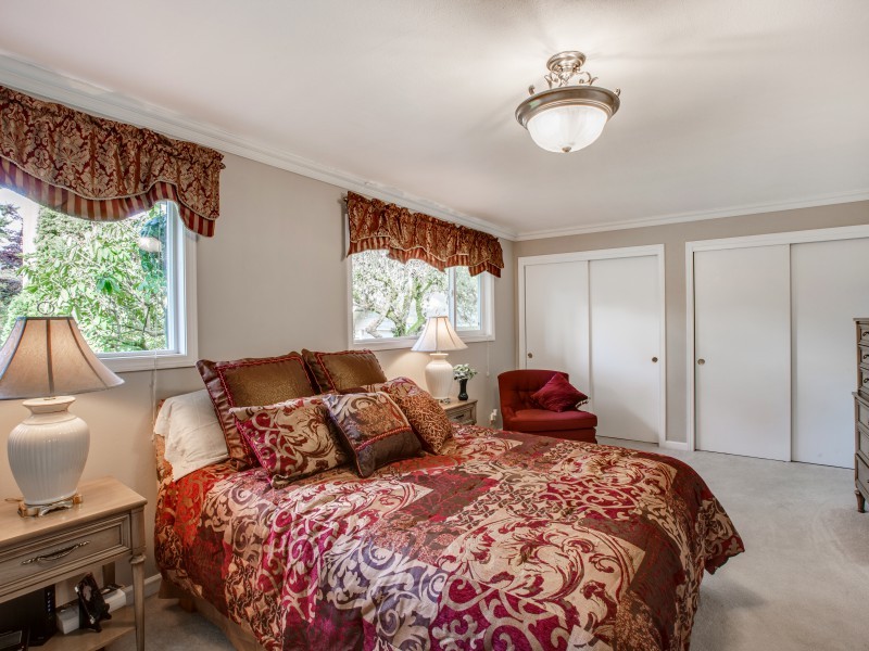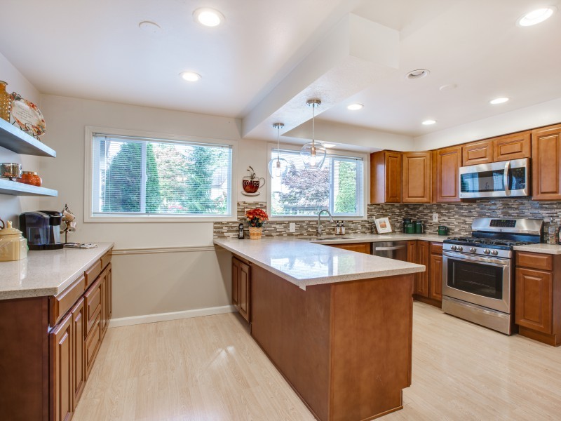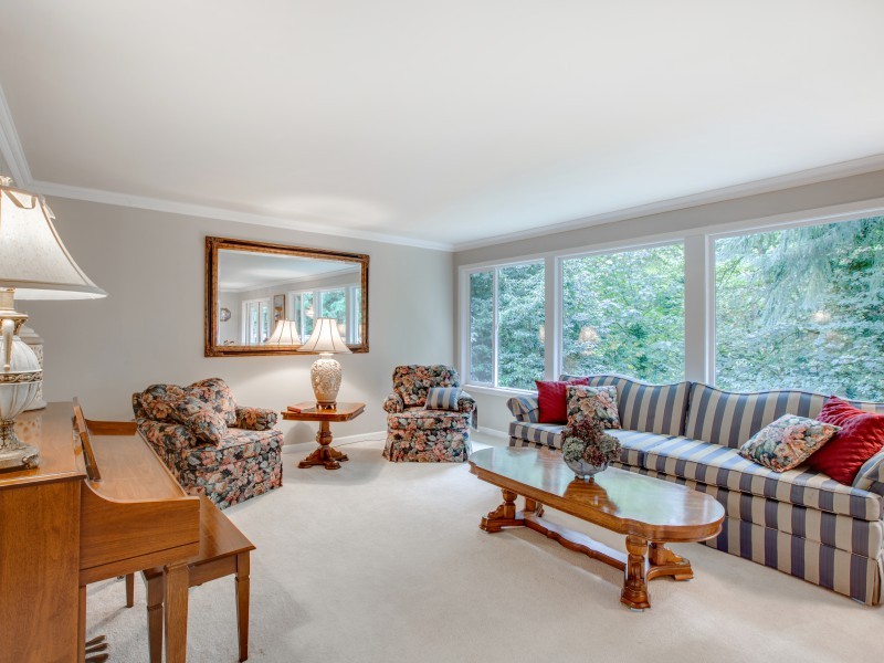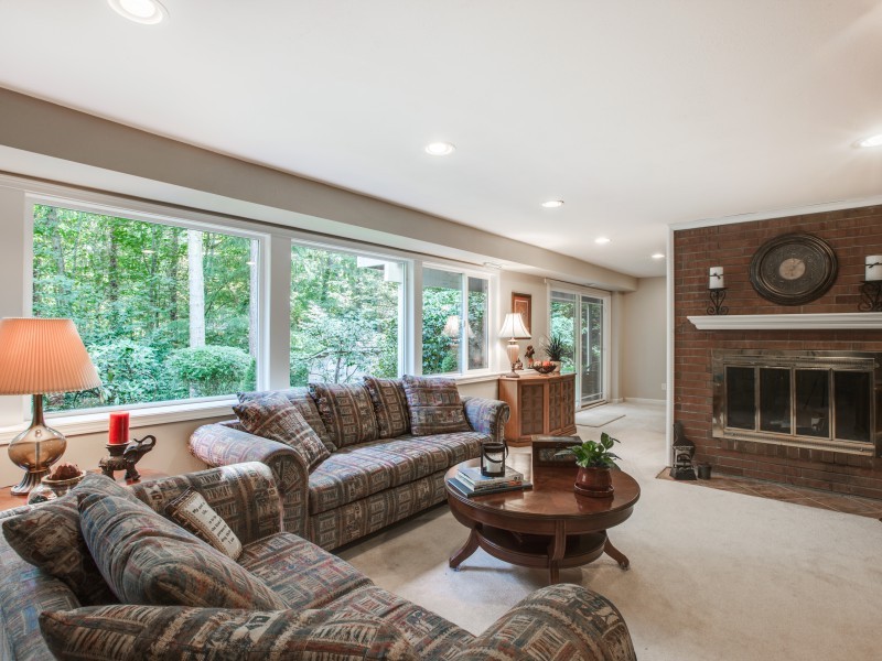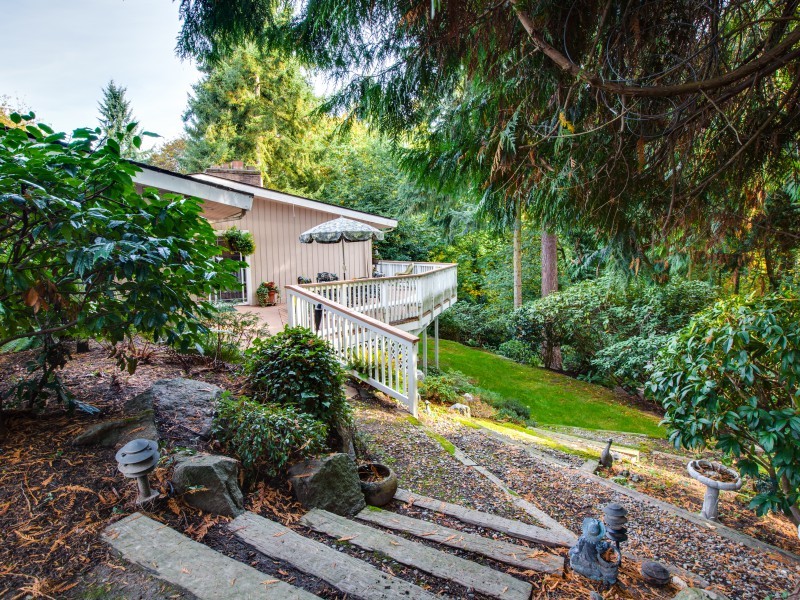 Solid quality built Bellevue home on more than hlf acre-22,546 Sq Ft. Quiet serene cul de sac sited in native spark like grounds. Generous bdrms, master en suite is 11x23 plus 3/4 bth. Oversized view windows up & downstairs bringing in the natural views. 3 frplc, newly updated kitchen w/eating space. Stainless appl, gas range, beechwood cabinets, quartz counter, stone & glass backsplash. Downstairs Fam Rm+Entertainment Rm+Excersize Rm & Laundry w/desk & storage galore. Crown molding throughout.