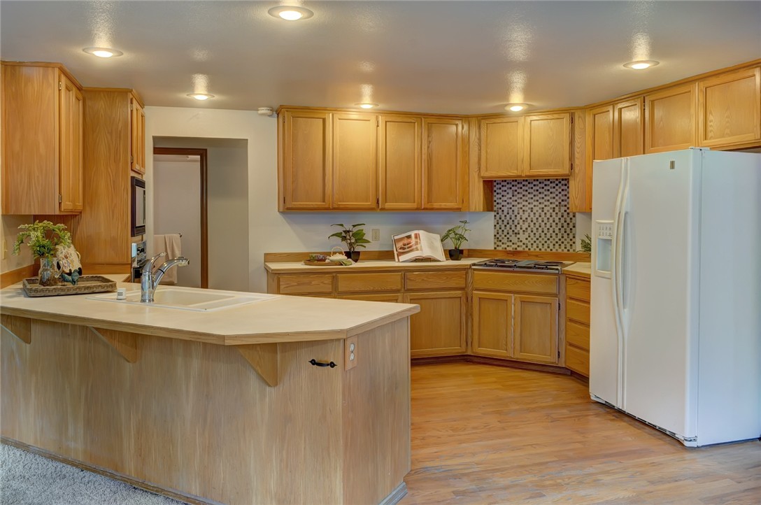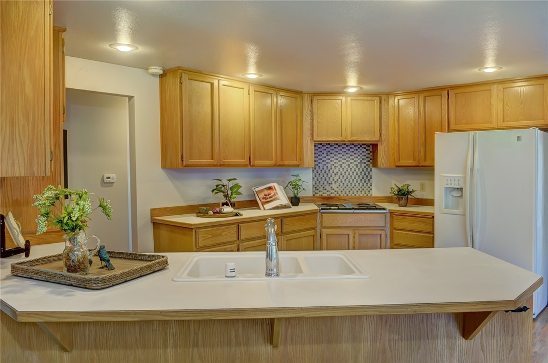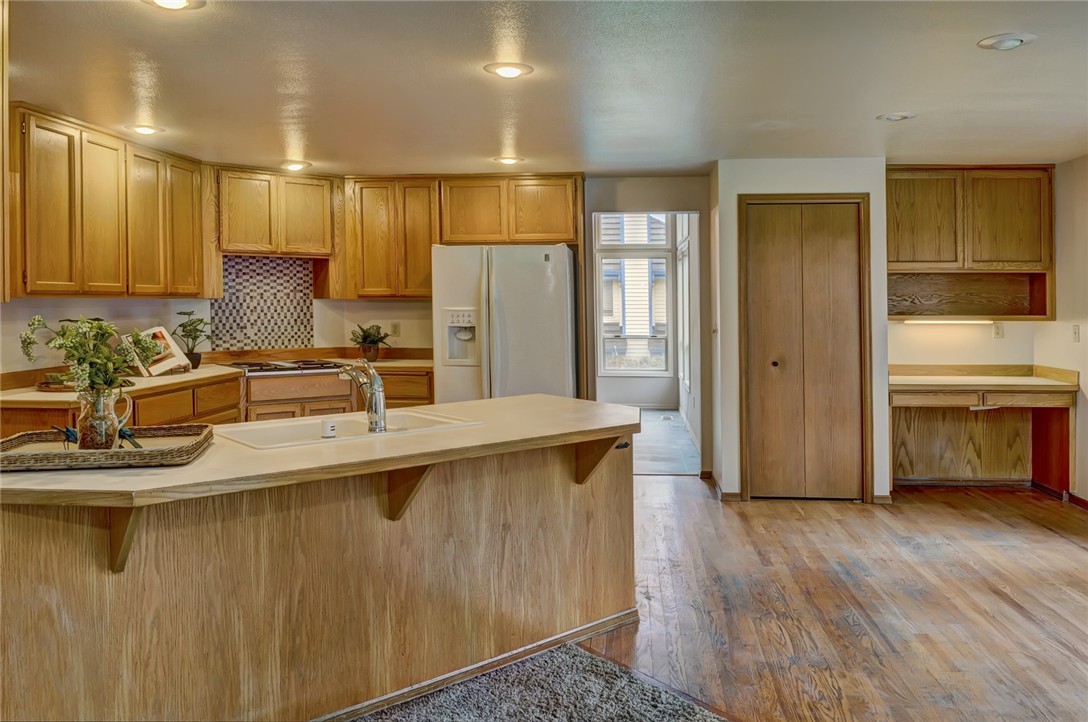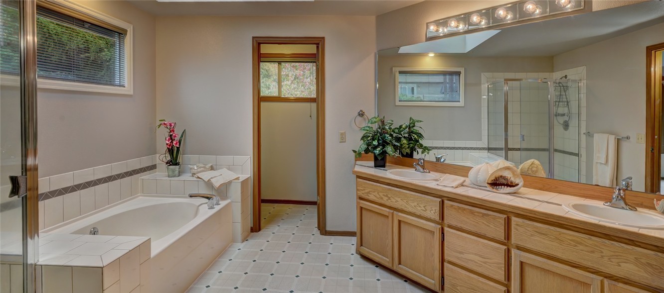 This Desirable & Classic Ridgetop Beauty, complete with Olympic Mtn Views is crisp and clean w/ all new CARPET & INTERIOR/EXTERIOR PAINT! Hardwood entry leads to the living and dining area..flooded w/light from large windows, vaulted ceilings and skylights. Large master has attached 5-piece bath & walk-in closet. Formal dining room & convenient eat-in kitchen area, complete w/ built-in desk area. Family rm offers a fireplace & french doors opening to a fully fenced back yard...& a 3-car garage!