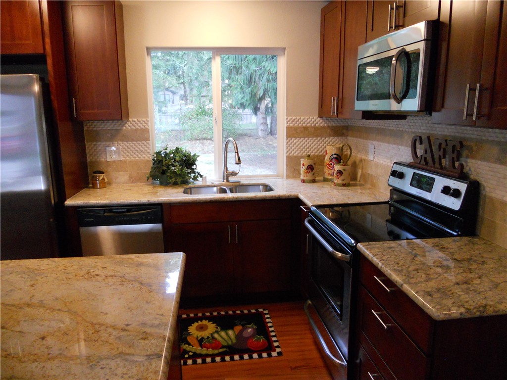 Beautiful remodel w/ open floor plan kitchen & brand new cherry cabinets, granite, sinks, stainless appliances & fixtures. Fresh paint, new carpet, new vinyl windows, new doors, new deck and move in ready. Enjoy the huge family room with access to spacious fenced back yard makes for easy, enjoyable gatherings. Bathroom w/new vanity, tile floor and tile on tub surround. Convenient living in the heart of Covington with shopping, restaurants, medical facilities, schools & more in quiet neighborhood