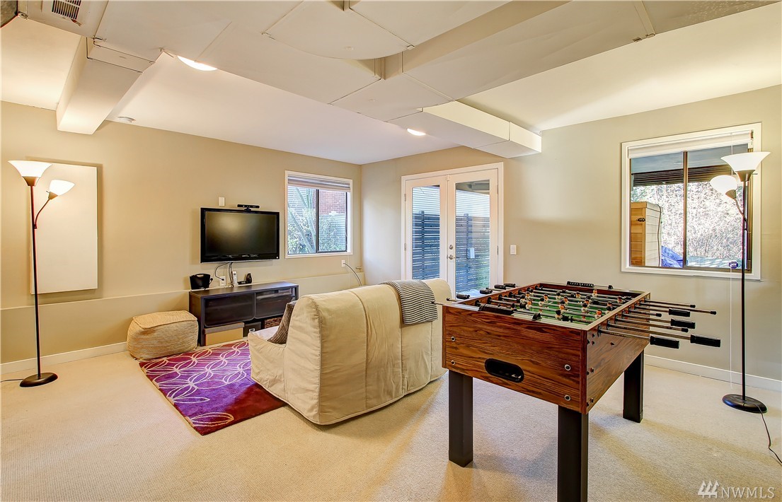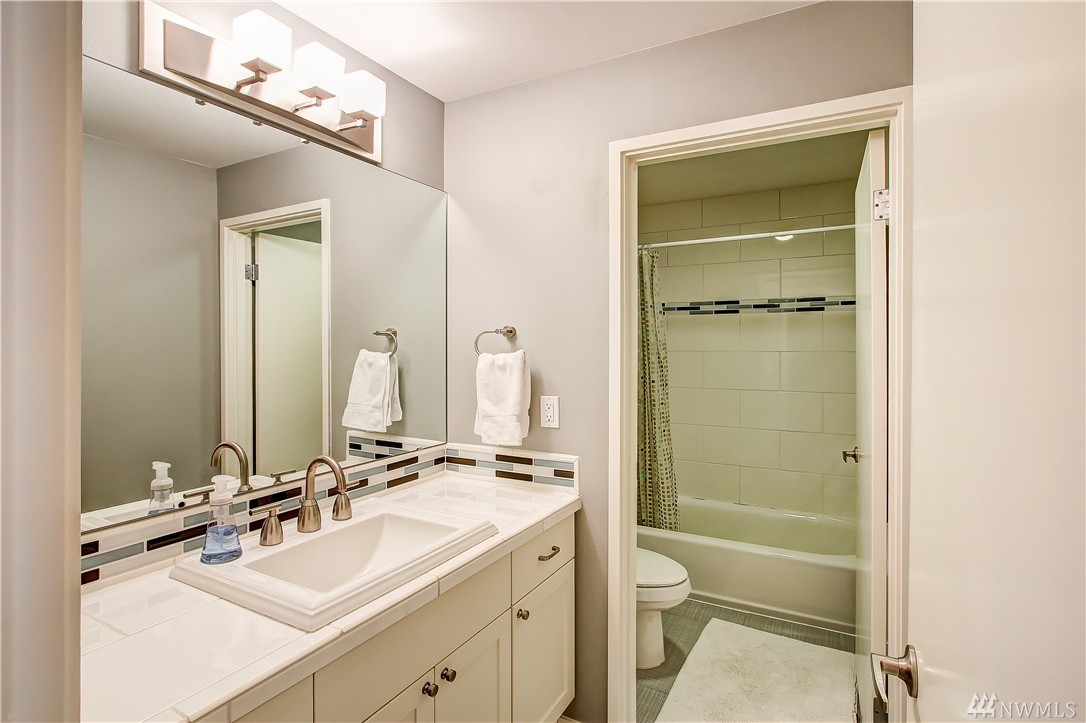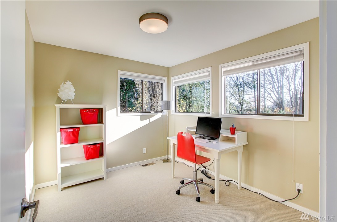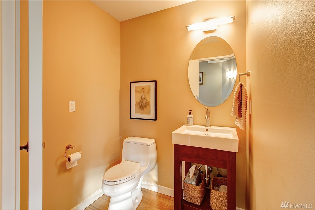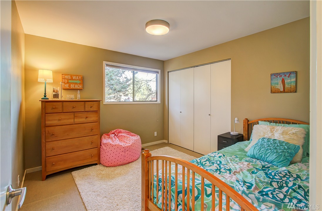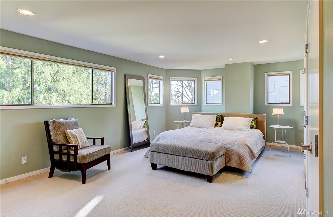 Hawthorne Hills Contemporary: loads of natural light yet mature trees provide privacy & tree house-like view. Main floor has open floor plan with bamboo floors, wood burning fireplace, updated kitchen w/ granite slab counters, stainless appliances, family room, deck, Cascade views, and 1/2 bath. Convenient laundry, 3 beds, full bath, and a master suite with 3/4 bathroom up. Rec room on the lower level, access to yard and 2 car car-port. Great access to lake/Magnuson Park and U-Village.