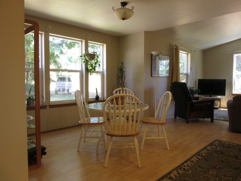 Quiet living on 1.4 acres 5 minutes to I-5, exit 88. Rambler has a 5 BEDROOM SEPTIC. Home is 3 bed/2 bath w/disabled access and features master suite, vaulted great-room warmed by pellet stove, covered rear patio for entertaining. Landscape yard has room for everyone and blend of mature trees and shrubs providing sun or shade. About one acre fenced pasture. Unique floorplan has bonus room that has been home office, formal dining & crafter space. New paint, carpet & flooring.