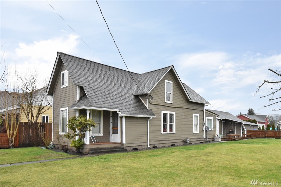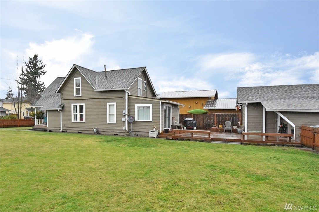 Turn of the century craftsman on a large double lot in downtown Buckley. Fully fenced lot with detached garage with old style canning room/ storage area. Spacious deck off back slider. Inside features a 3 bedroom, 2 bath home with a full upstairs bath and downstairs another bathroom with shower. Newer roof, foundation and electrical. Convenient location close to 410 E and downtown.