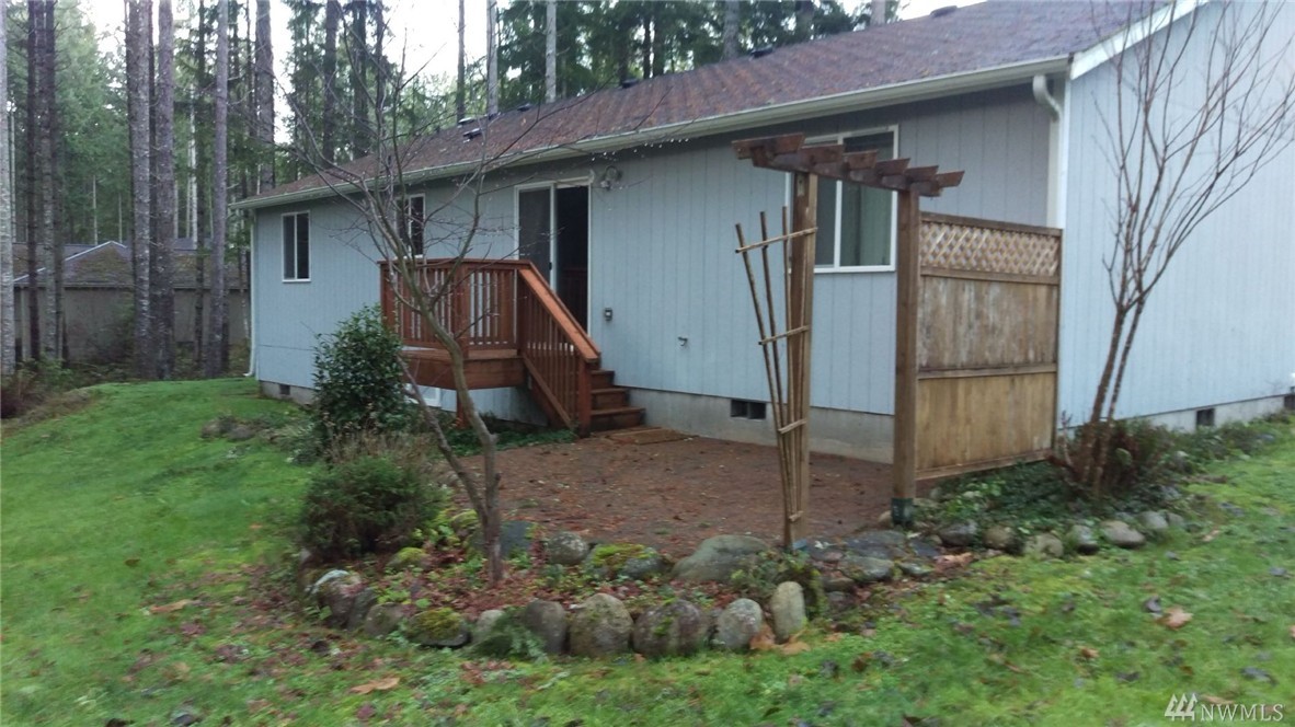 Very pretty rambler with great layout in wooded setting! Central living open concept to dining area with light, bright, easy-care Pergo floors. Kitchen with stainless appliances and loads of storage. Large master on one side of house with a wall of closets and dual shower ensuite. Patio overlooking spacious back yard, greenbelt, trails and sport court. Enjoy the lake, community pool, parks, beaches and Clearwood's many amenities!