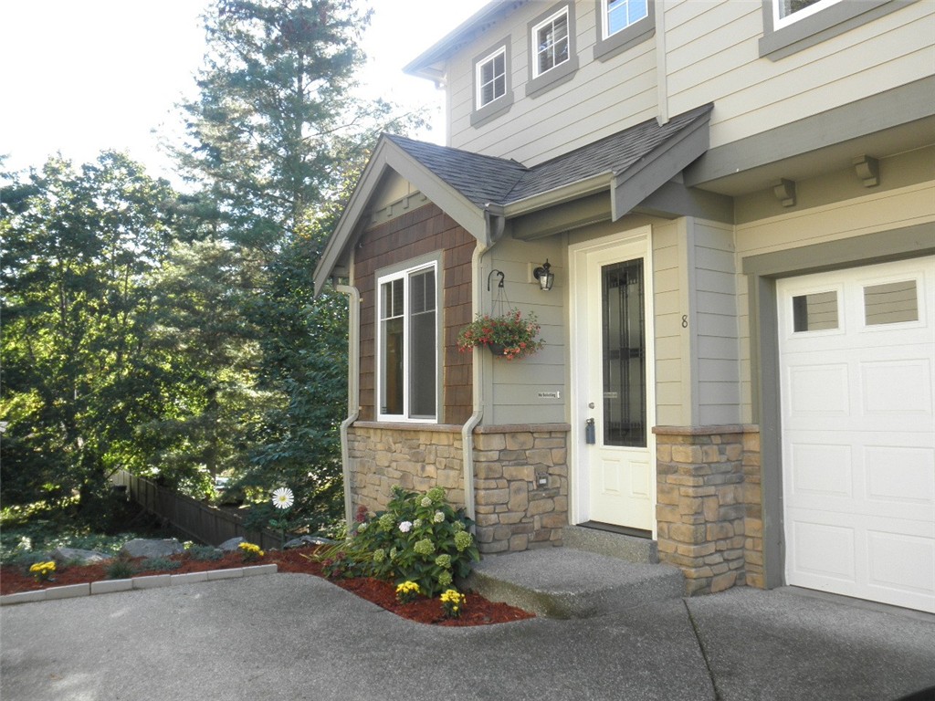 Charming house in secluded pocket of custom homes with unique designs. This home has real hard woods on main level, carpets and tile on the upper level. Kitchen has slab granite counters, wood cabinets stainless appliances, eating space, pantry, and lots of storage . 1,598 sq ft, 3 bedrooms, 2.5 baths, master walk-in closet, bonus/office, upper level laundry, wood-wrapped windows, wood baseboards, gas fireplace, deck/patio, two-vehicle 420 sq. ft. garage tandem. Very low HOA dues. Guest parking.