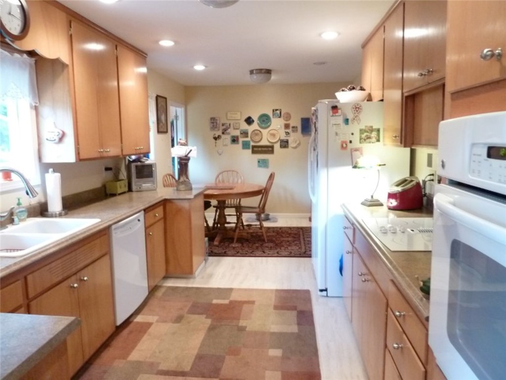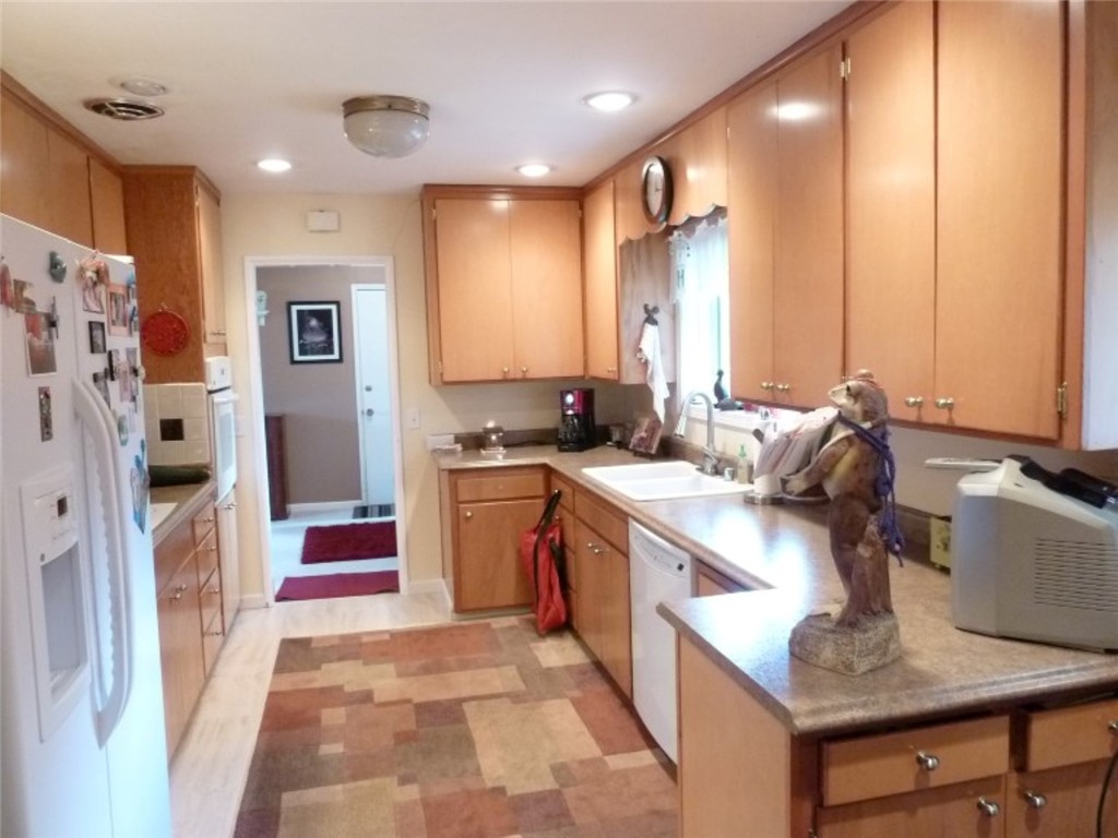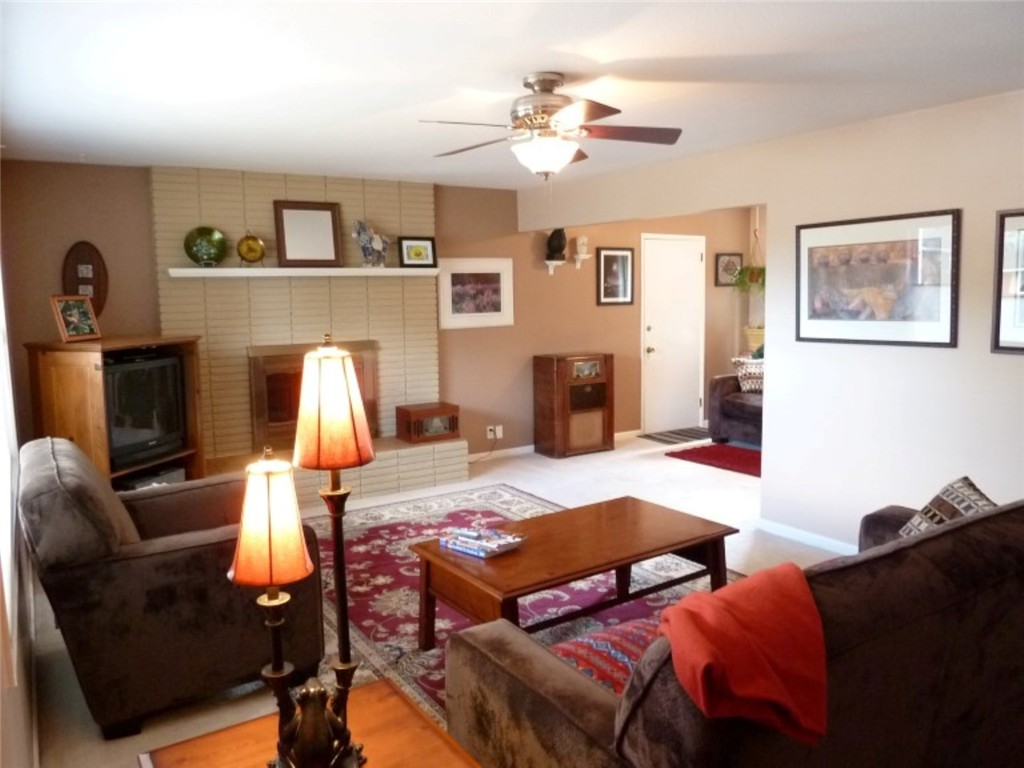 Attractive and well maintained rambler in great location. Updated kitchen with high end laminate counter tops and tile backsplash, newer gas forced air heating. Spacious living/dining area with fireplace. Nicely remodeled bathrooms. Move right in condition. Enjoy the large fenced back yard from your private patio with brick fireplace/BBQ area. Super shade tree.