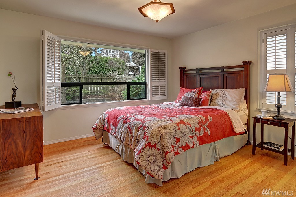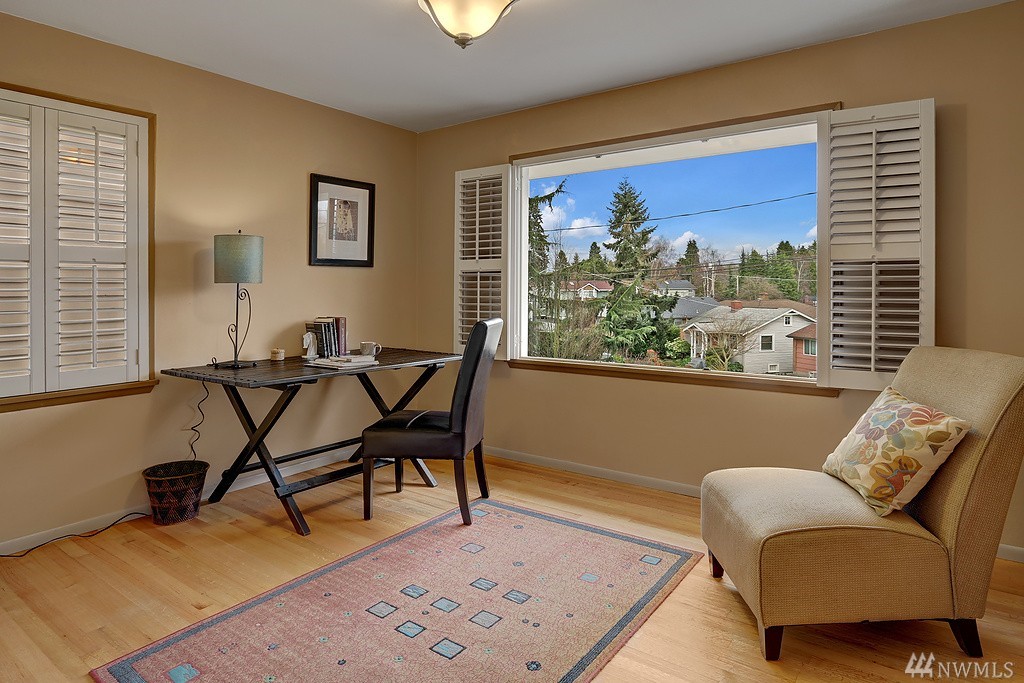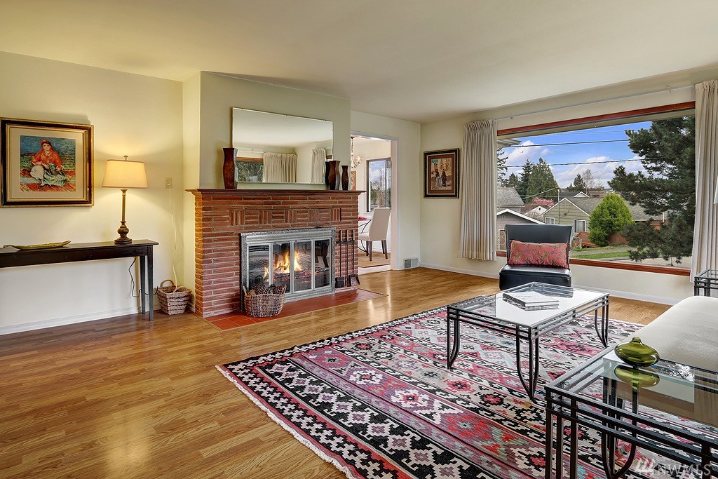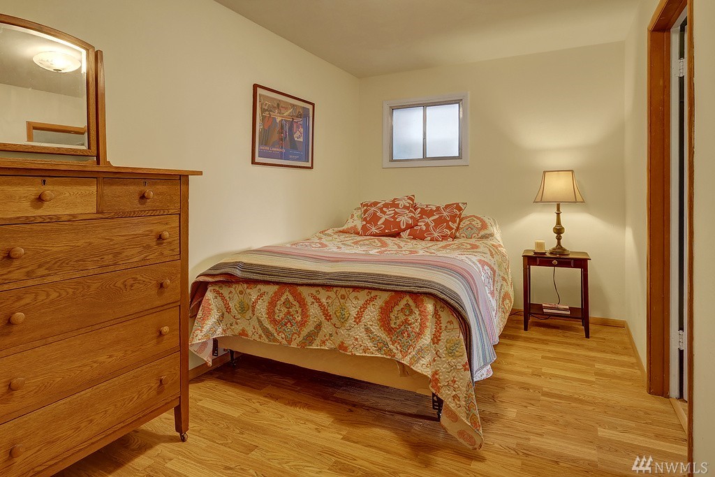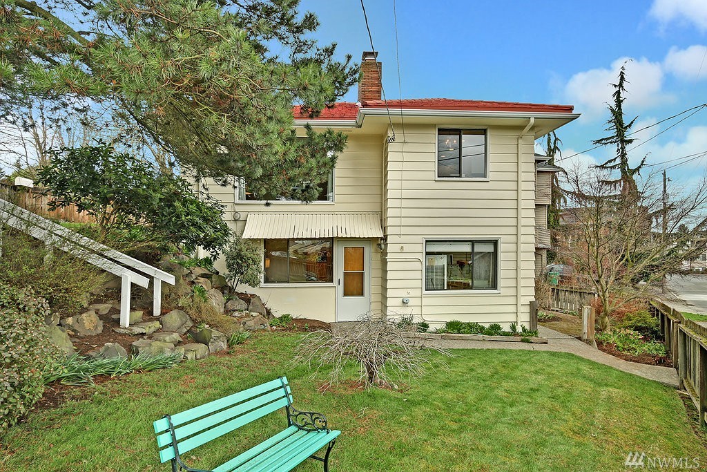 Lovely light filled Loyal Heights home with basement mother in-law. 2 bd/1 bath on upper level w/ hardwoods throughout. Lower daylight level with one bedroom and 3/4 bath. Large living space and full kitchen - plenty of storage. Single car garage w/ additional storage room/wine cellar. Newer "lifetime" roof and recent sewer repair. Sun drenched corner lot - gardeners paradise. Just steps to Cafe Fiore and a few blocks to Golden Gardens!