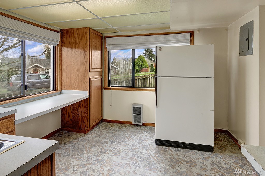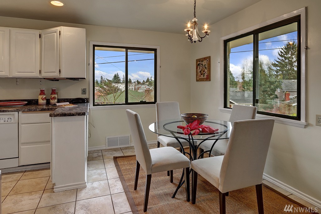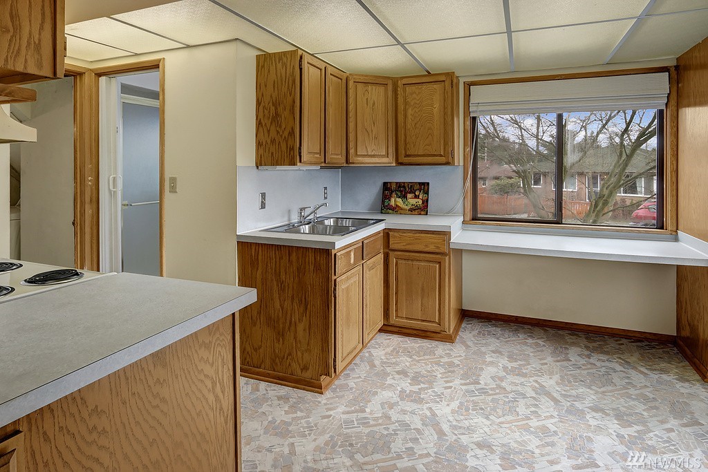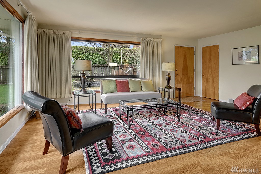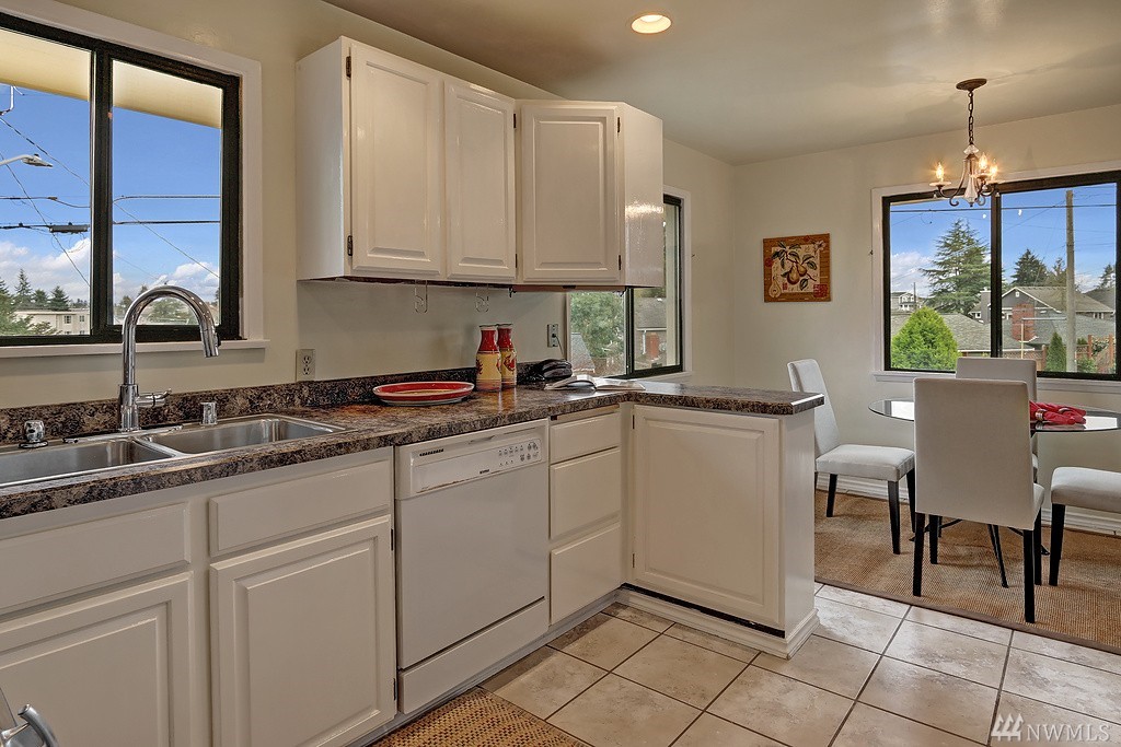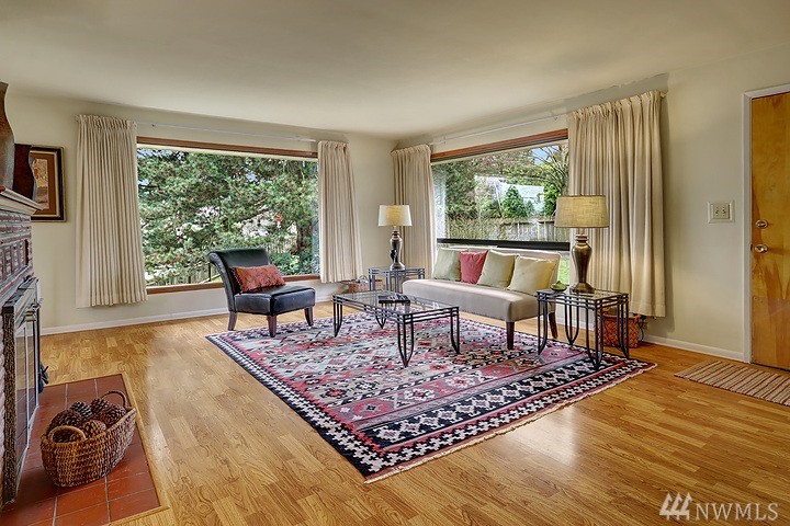 Lovely light filled Loyal Heights home with basement mother in-law. 2 bd/1 bath on upper level w/ hardwoods throughout. Lower daylight level with one bedroom and 3/4 bath. Large living space and full kitchen - plenty of storage. Single car garage w/ additional storage room/wine cellar. Newer "lifetime" roof and recent sewer repair. Sun drenched corner lot - gardeners paradise. Just steps to Cafe Fiore and a few blocks to Golden Gardens!