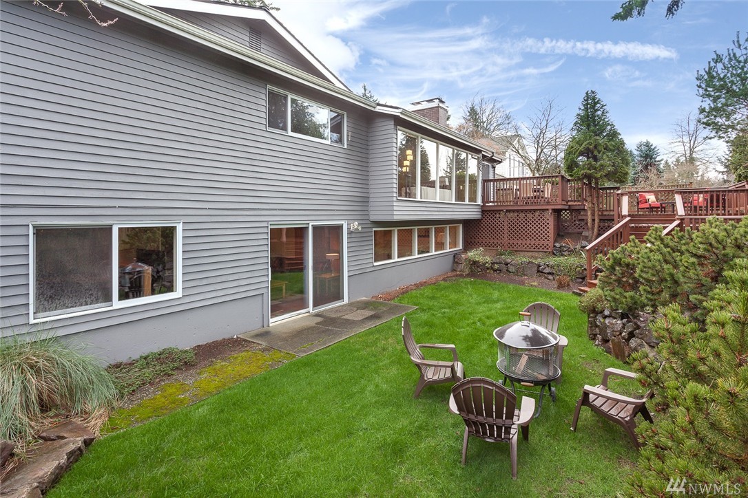 Superbly maintained & upgraded home in highly sought-after Broadview. A tranquil setting awaits you in this warm & functional home that captures NW living at its best. Top of the line SS appl. in a true Chef's kitchen. Formal dining + 2 wood-burning fp's. Huge windows that peer into a forested backyard. Grounds include a fenced backyard and architecturally designed Trex deck. Lower level offers a unique living space large enough to accommodate a 2nd kitchen. 5th bed option, TONS of storage.