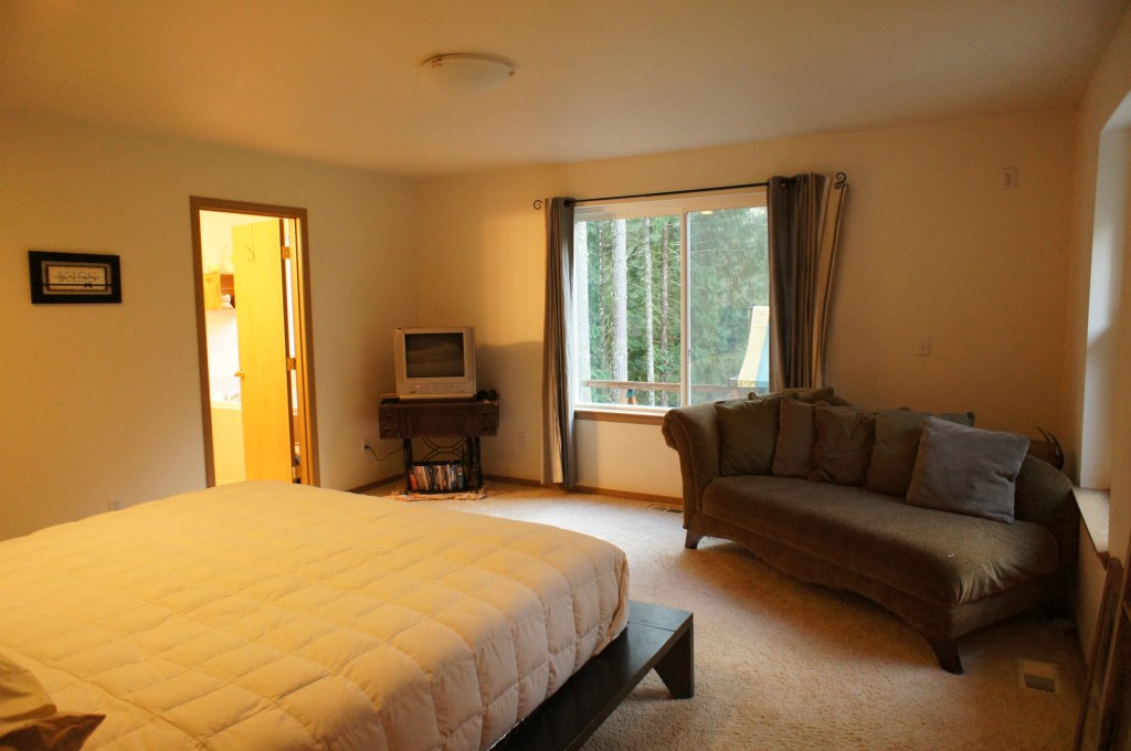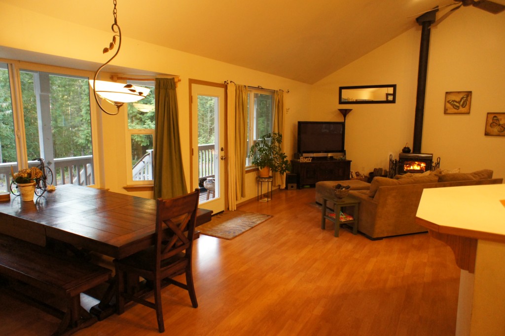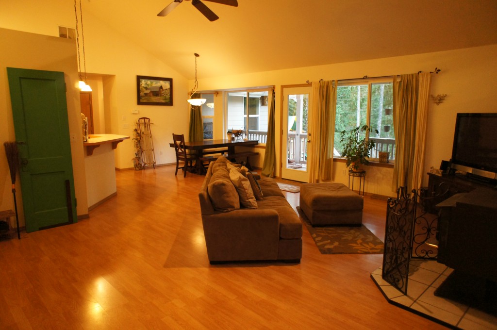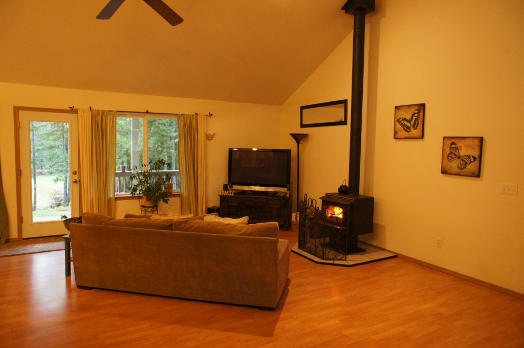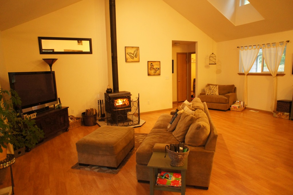 Stunning one story custom built NW Contemporary built in 2002. Like New! Nearly 5 acre level lot! Private and secluded! Spacious 3 bedroom home with large great room and vaulted ceiling with windows above for lots of natural light! Master Bedroom including master bath w/full bath. Nice level spacious backyard with large deck. 2 car attached garage. 2 party shared well.