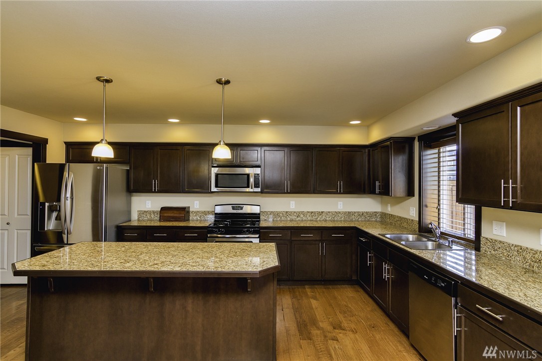 Great locale, bus routes, Haggen SC, golf course off to the southeast, new upscale community. You will love this wide open floor plan that features everything you have been looking for: hardwood floors, granite counters, island kitchen, stainless steel appliances, downstairs office, gas fireplace, wood wrapped windows, nice hemlock millwork package, white painted interior doors, fully fenced yard, fully landscaped front and back.