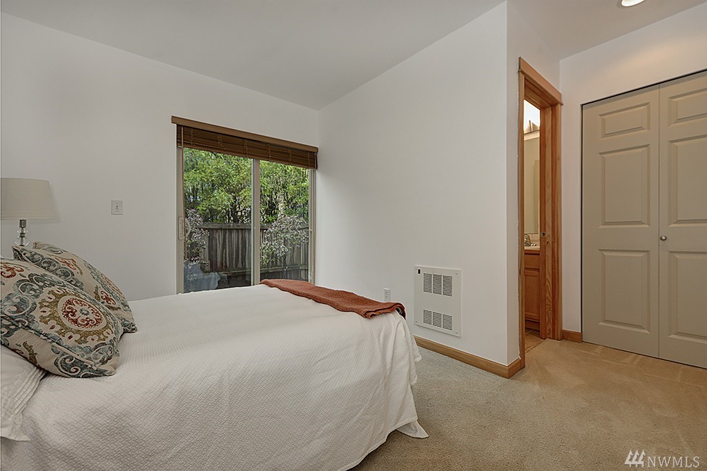 Tucked off the street in a quiet location, this corner unit townhouse has an exceptional floor plan, different than many other townhouses. Both upstairs bedrooms have vaulted ceilings with skylights, and functional layouts. Duel vanity sinks in the bathroom allow for plenty of elbow room. The lower level bedroom is much larger than most, and opens to a spacious backyard. Open kitchen with hardwood flooring is adjacent to the living area, complete with lots of windows and tons of natural light.