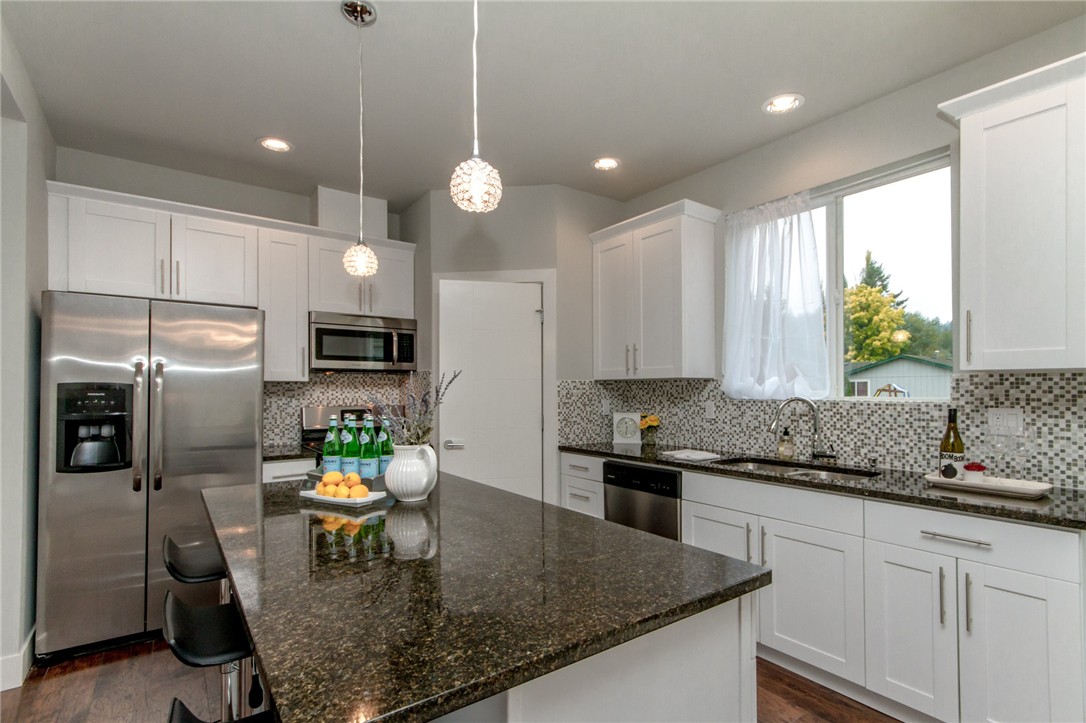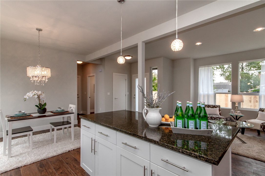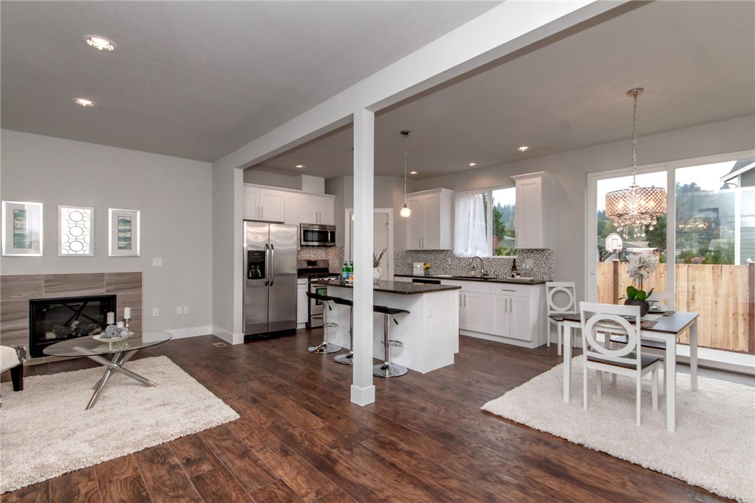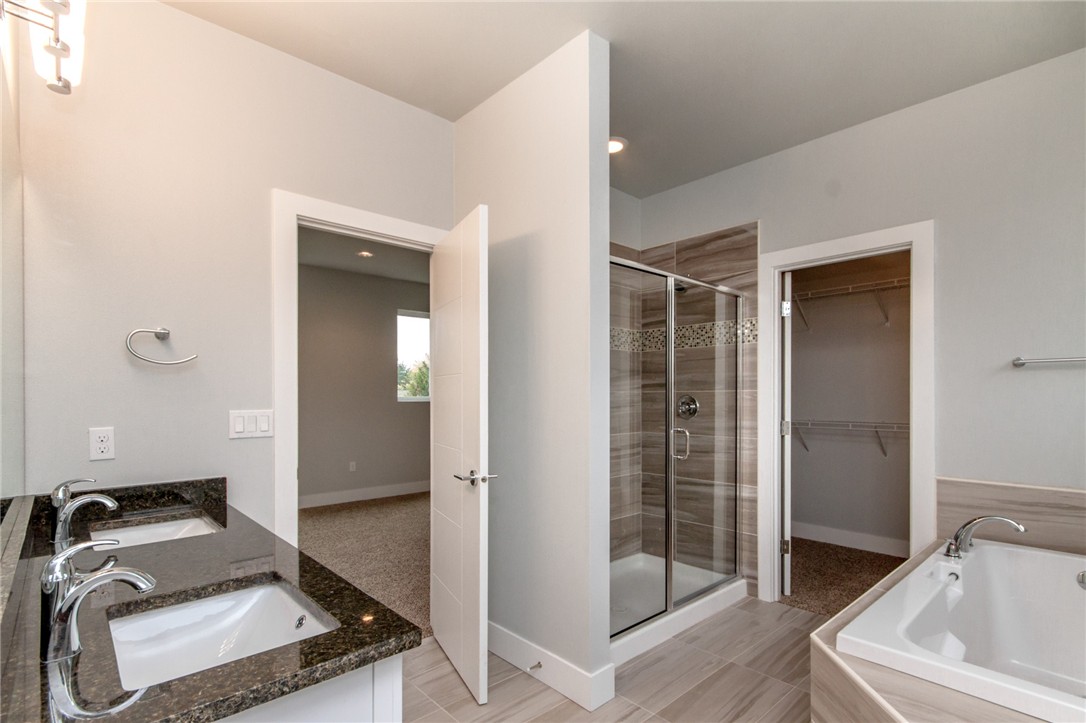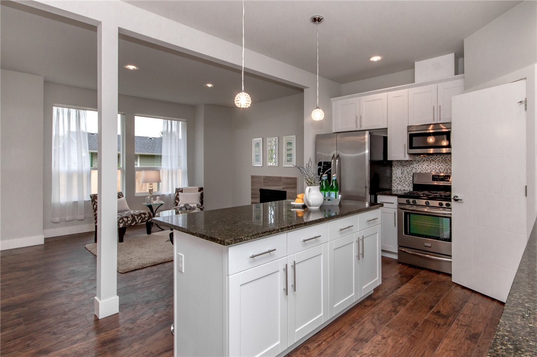 NEW construction. Mt Rainier view & modern details includes engineered flooring & gas fireplace. Kitchen has walk-in pantry, soft close drawers, stainless appliances, granite countertops & 6 burner gas cooktop. Upper floor has bonus loft, large master with sitting area, 5 piece bath & walk-in closet. Additional full bath, three bedrooms & utility room complete upstairs. Fully finished 3 car garage with opener. Fully fenced back yard & Home offers a 2-10 warranty. Builder Buyer Bonus/INQUIRE!
