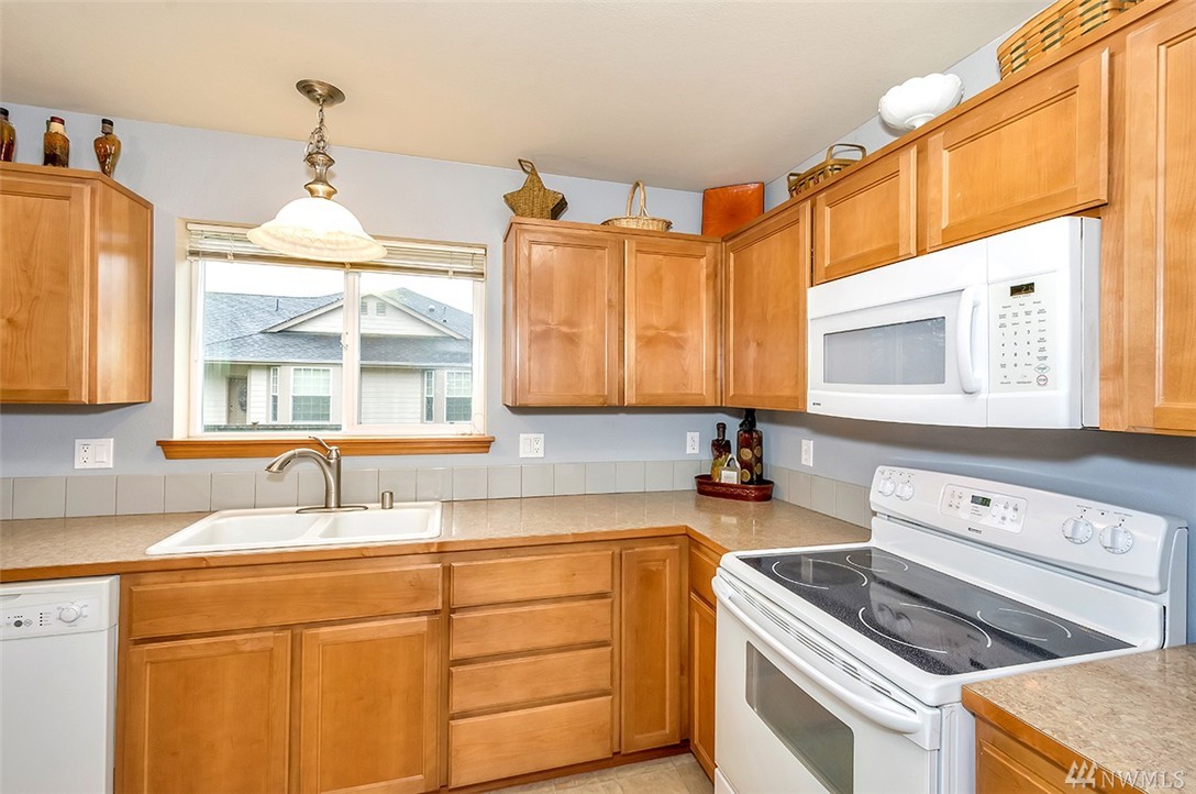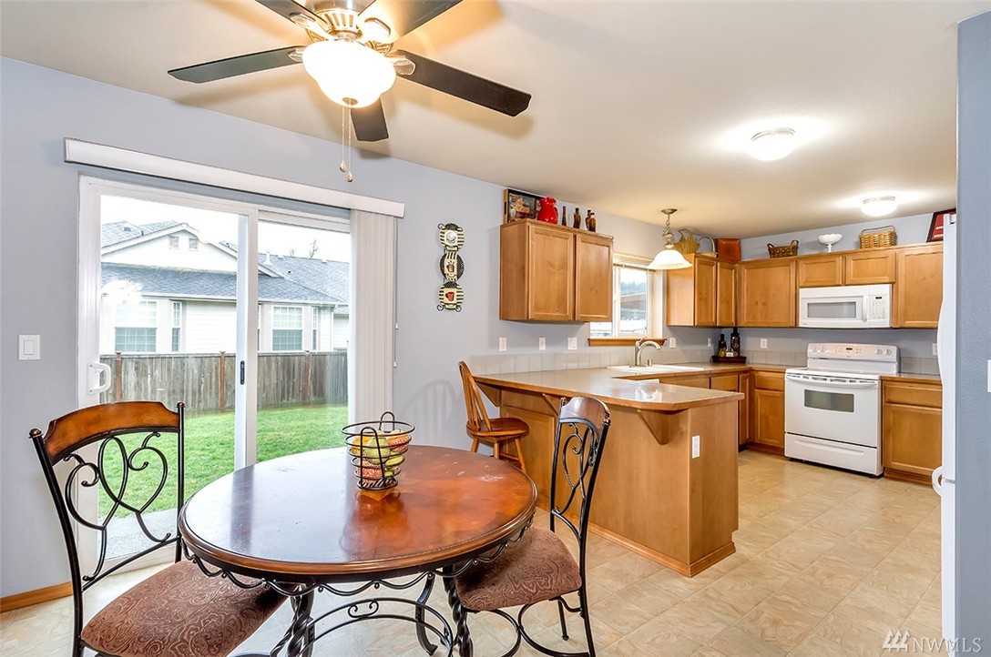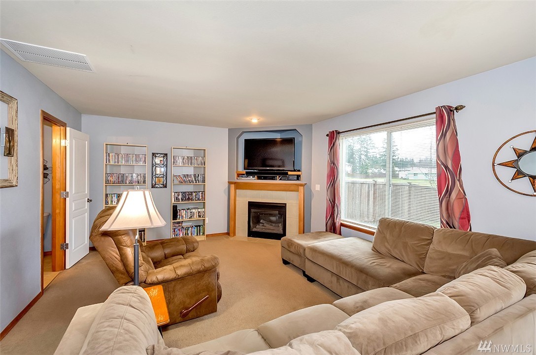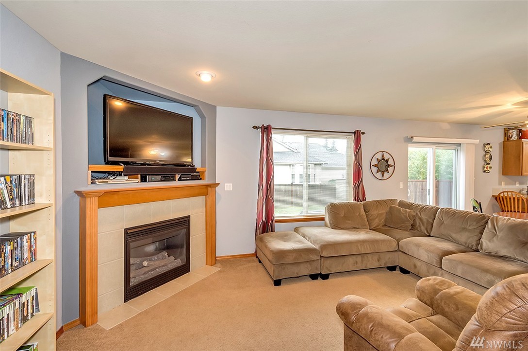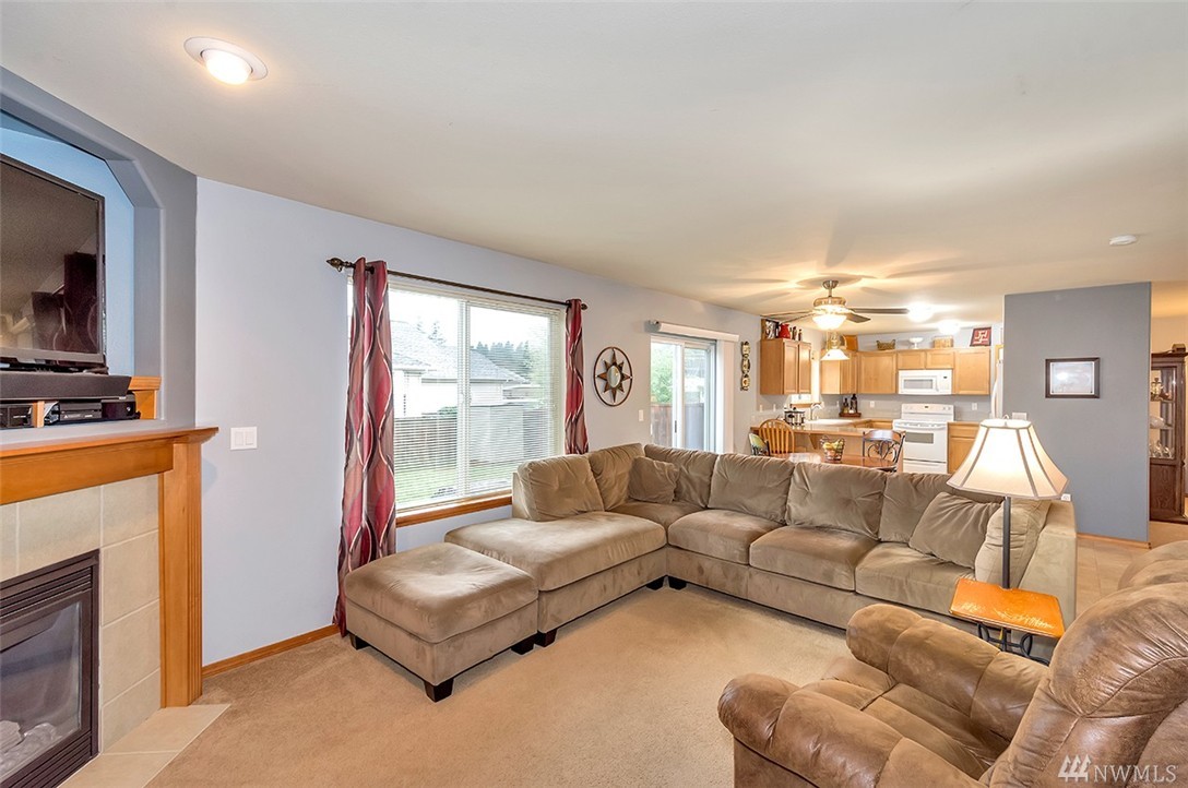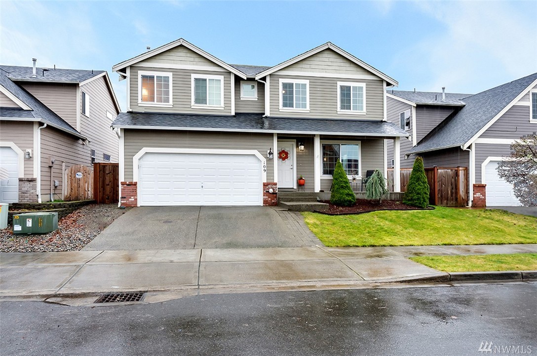Well maintained 5 bedroom, 2,254 sq ft, 2.5 bath home with large fully fenced back yard & nice landscaping in the front yard. Formal living room & family room with corner gas log fireplace. Big kitchen with a large corner pantry & sliding glass door to the patio. Huge master bedroom boasts French doors, 5 piece master bath, corner soaking tub & walk in closet. Community offers a park, basketball courts, pond, fountains, & walking trail. Mount Rainier view too! Qualifies for a USDA 0 down loan!