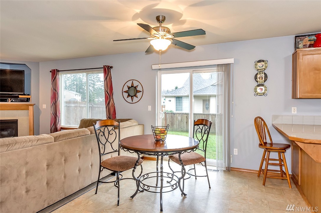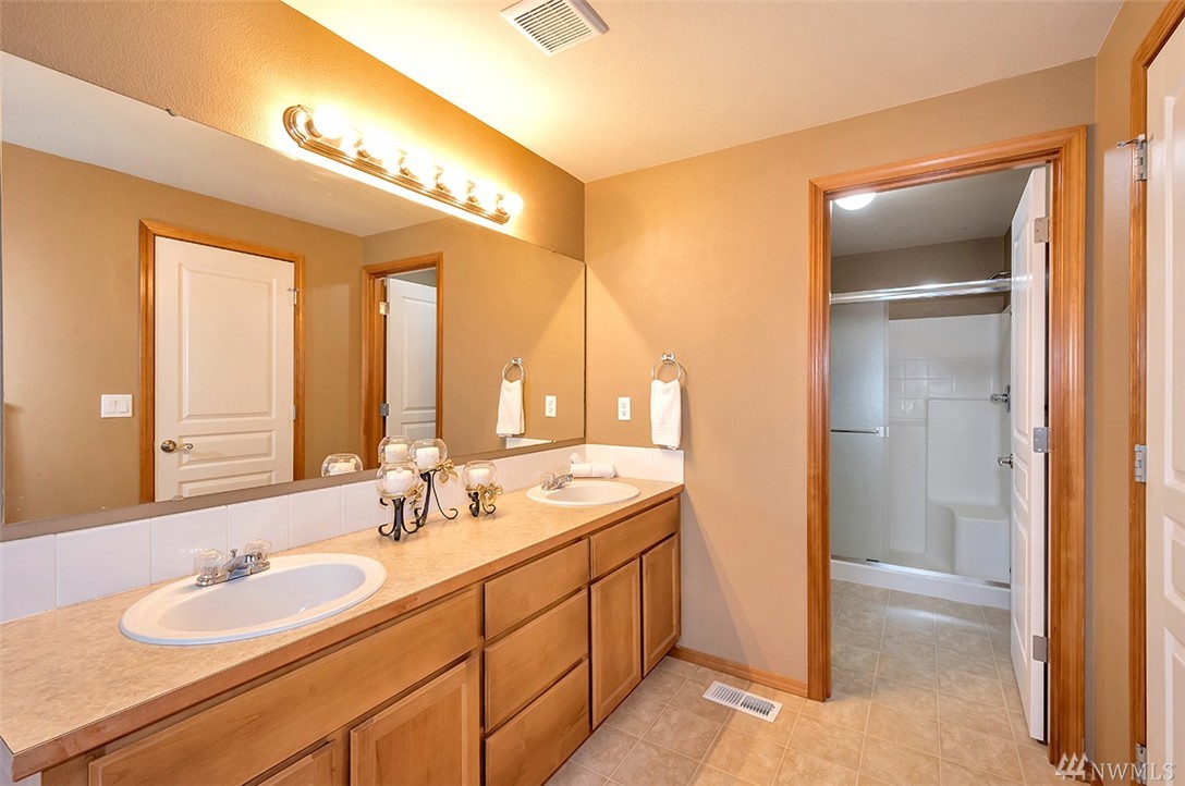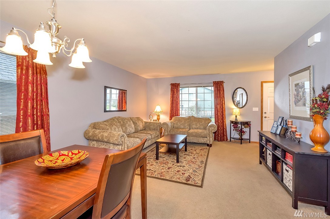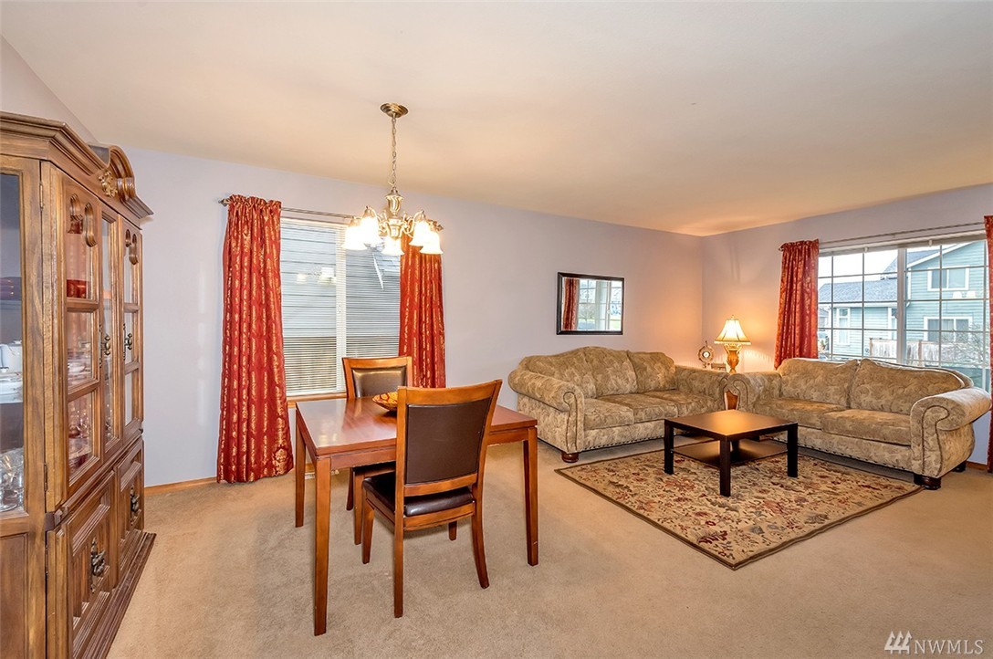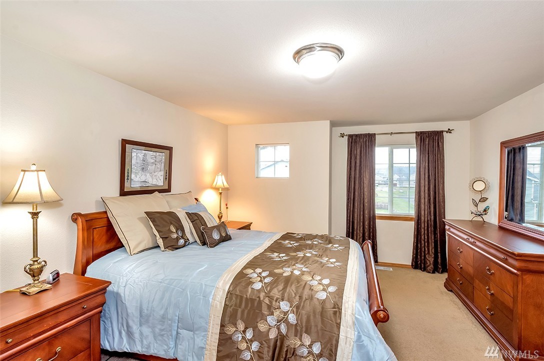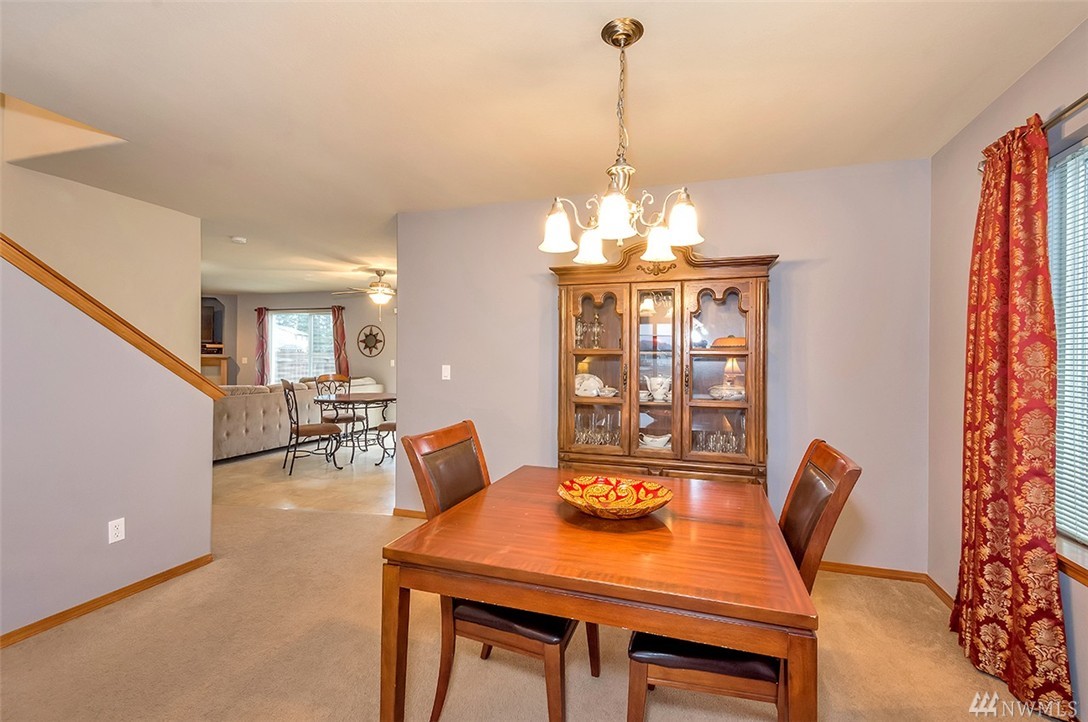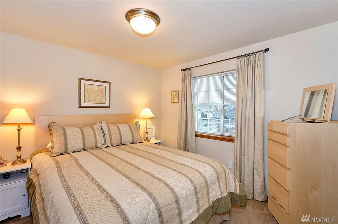 Well maintained 5 bedroom, 2,254 sq ft, 2.5 bath home with large fully fenced back yard & nice landscaping in the front yard. Formal living room & family room with corner gas log fireplace. Big kitchen with a large corner pantry & sliding glass door to the patio. Huge master bedroom boasts French doors, 5 piece master bath, corner soaking tub & walk in closet. Community offers a park, basketball courts, pond, fountains, & walking trail. Mount Rainier view too! Qualifies for a USDA 0 down loan!