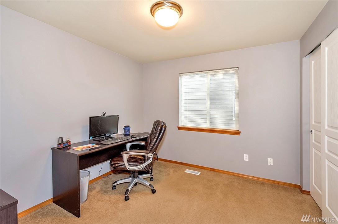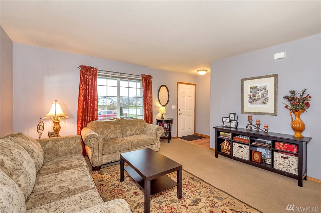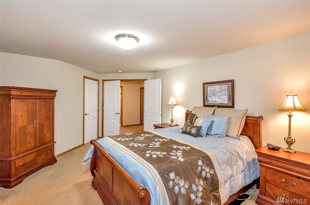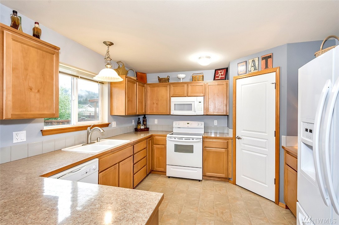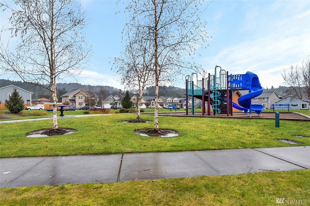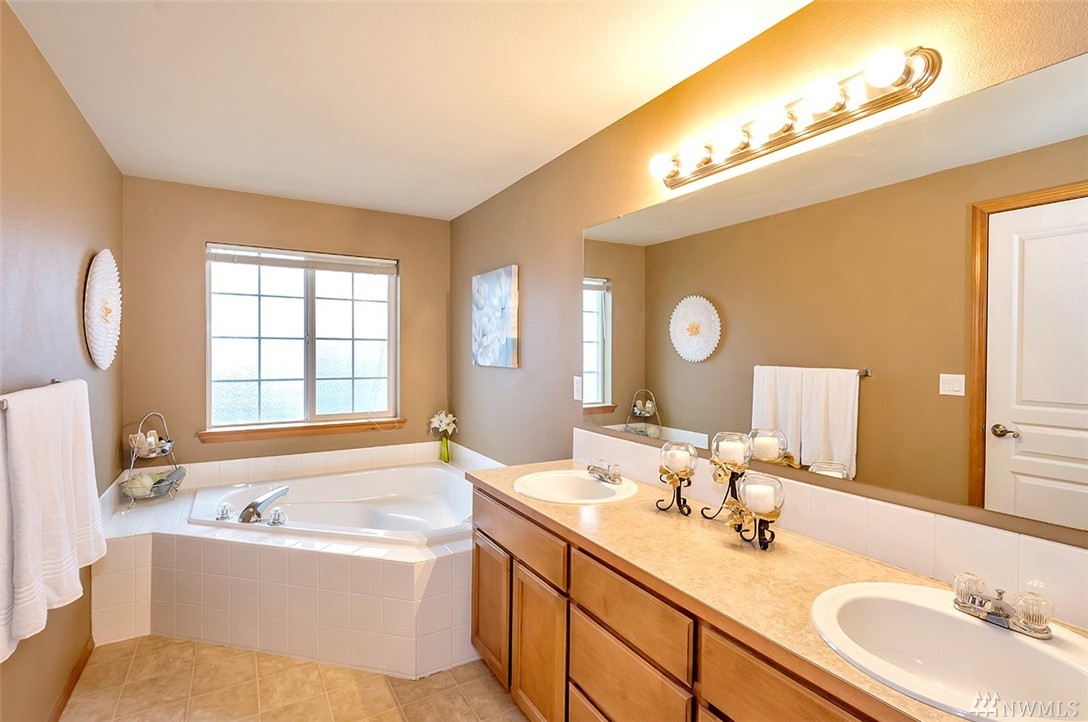Well maintained 5 bedroom, 2,254 sq ft, 2.5 bath home with large fully fenced back yard & nice landscaping in the front yard. Formal living room & family room with corner gas log fireplace. Big kitchen with a large corner pantry & sliding glass door to the patio. Huge master bedroom boasts French doors, 5 piece master bath, corner soaking tub & walk in closet. Community offers a park, basketball courts, pond, fountains, & walking trail. Mount Rainier view too! Qualifies for a USDA 0 down loan!