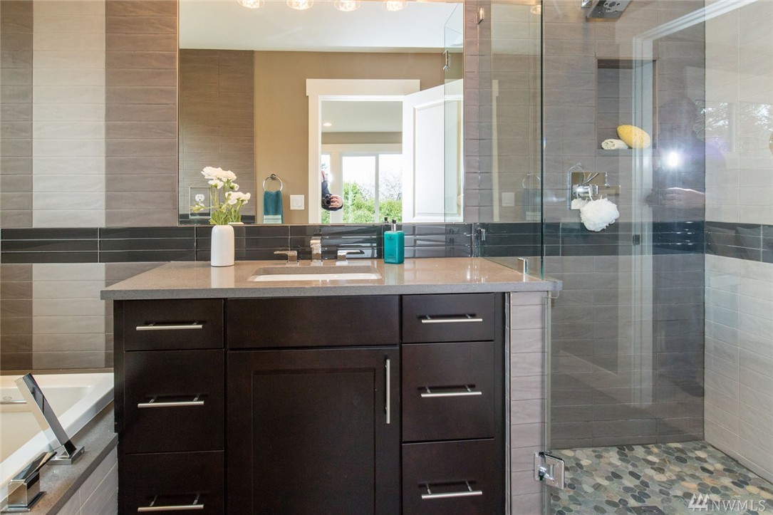 Stunning new constr set on a knoll w/ state of the art design, built by Artoush Fanaiyan. Well thought out spaces allow for flex living. Gorg ktchn w/ granite counters, SS appl, Wolf range, Lrg pantry, brfst space & more. Spacious upper & lower fmly room. 4th bdrm/office w/ full bath on lwr lvl. Mster suite and 2 bdrms w/ Jack & Jill bath on the upper level. Upper lvl deck w/ frplc & territorial views. Terrific access to Google, DT Kirkland & frways. Highly desirable schls like Peter Kirk Elem.