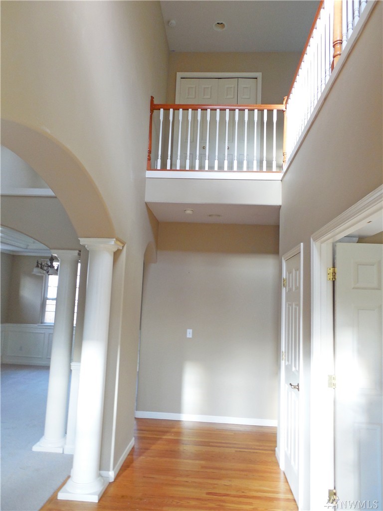 Sited at end of a cul de sac in beautiful neighborhood surrounded by lovely homes. Formal entry w/20' ceilings, hrdwd floors , lots of interior detailing- coffered ceilings, wainscotting living/dining rms. Spacious kitchen w/island, hrdwd floors opens to family rm w/eating area- glass doors to rear yrd. Full mstr suite up w/prvt bth, walk-in closet, 2 additional bdrms, large open area could easily be be office, study or hang out area. Freshly painted, yrd needs landscaping but great overall home