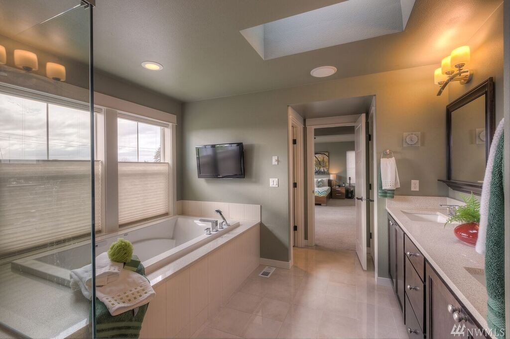 Sophisticated smart home with $200k in custom upgrades. Top of the line kitchen with granite slab, European cabinets, upgraded appliances, custom fixtures. Hardwood floors, Ceasarstone countertops & HD top-down shades. Luxurious master with digital Kohler DTV shower system. Built-in's with custom wiring for LCD TV’s, two fireplaces, motion sensors, & private patio. Bidets. Lake and mountain views from master. All operated from your smart phone. Walk to Downtown Kirkland, waterfront, Google.