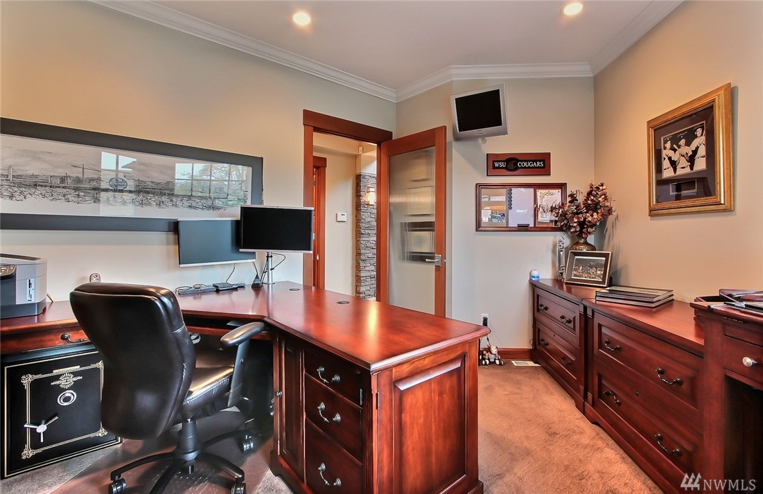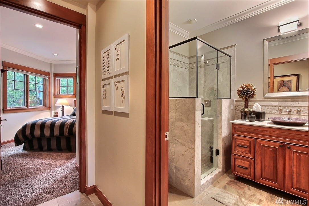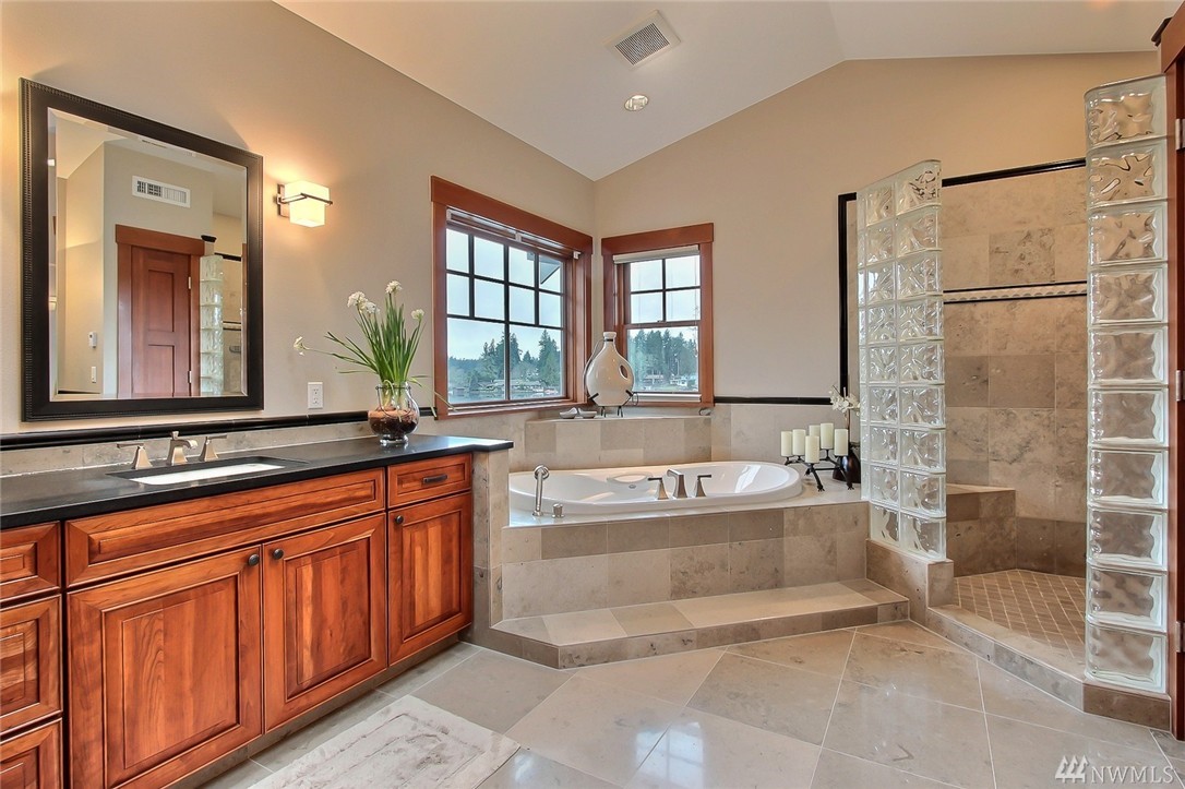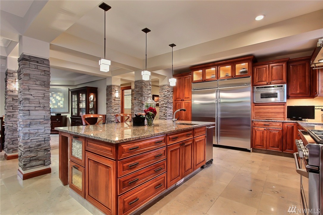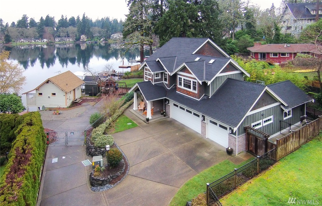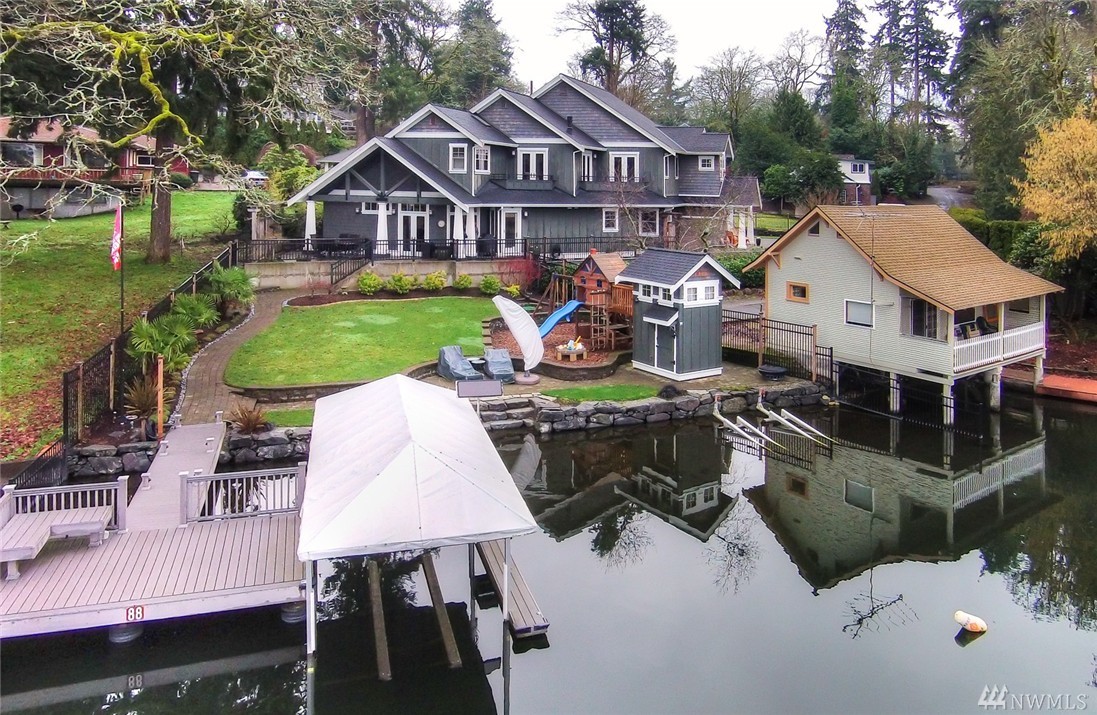 Resort style living in this beautiful custom built craftsman styled home. Grand entry W/stone accent pillars. Chef inspired kitchen W/SS appls, huge island, abundant granite counters & cherry cabinets W/lighted reed glass uppers. Open floor plan to dining & family rm w/boxed ceiling & great built-ins. Stone tile floor=elec rad heat. Pella wood wrapped windows & skylites. 4 Car gar, Sport court, dog run, lake side shed W/play house & dock W/boat lift. So much more! Wow, amazing, Great house!