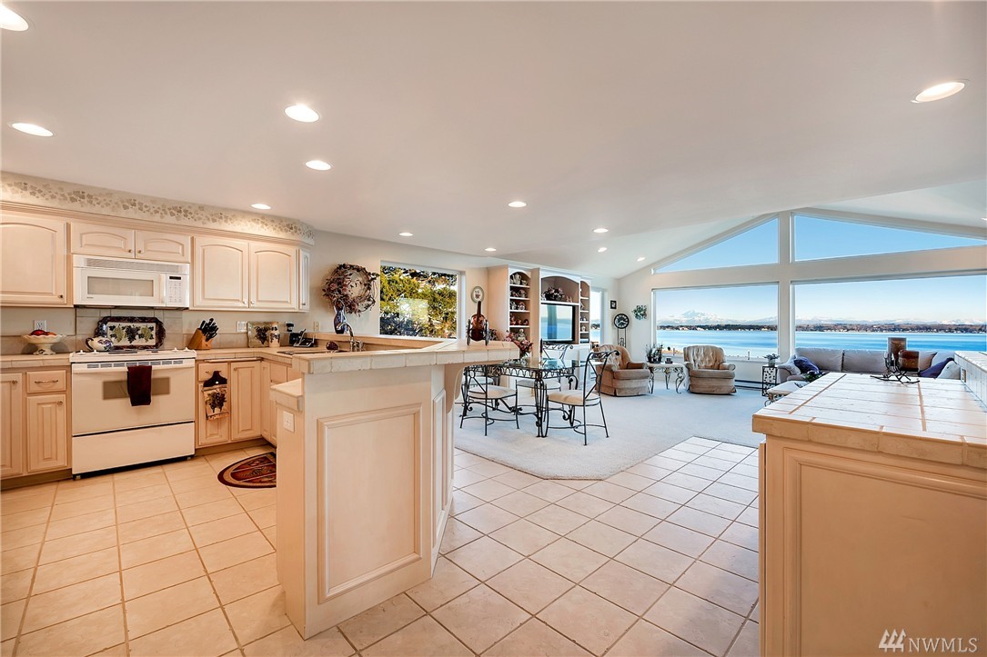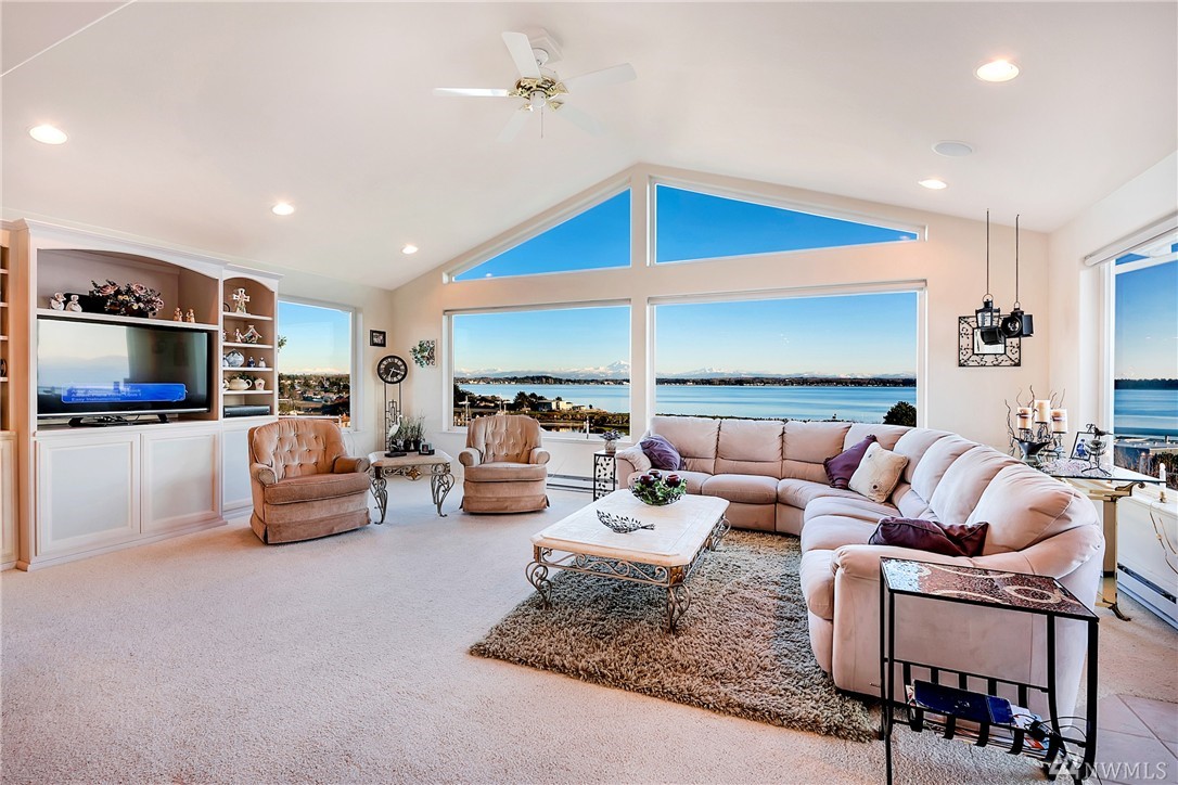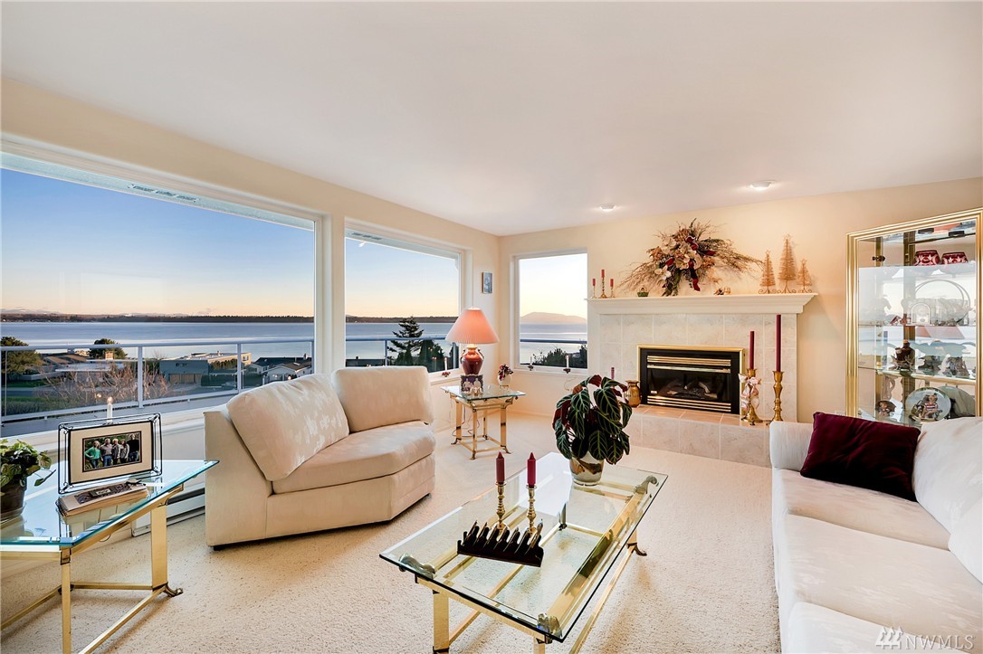 Million Dollar View! Move in and enjoy the panoramic view that extends from the Canadian mountains to the Islands of the San Juans with Mt. Baker, the Twin Sisters, Birch Bay, and the lights of the Refinery, in between! You also have a birds eye view of the boats going in and out of the Marina. The open floor plan, beautiful kitchen, and large deck makes this home ideal for entertaining. The fully finished downstairs includes an additional kitchen, a large family room & 3BRs and full Bath!
