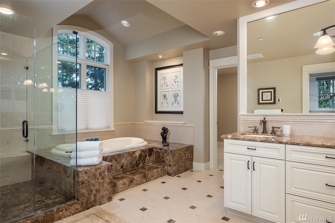 A superb combination of formal and informal spaces show off the fine construction of this home located on a flat, sunny lot in Enatai. Built for entertaining, the grand entry leads to the patio and gorgeous water feature which also connects to the dramatic family room. The 2nd floor has an elegant master suite, 3 additional bedrooms all with a connected bath, and a large bonus room. Shared waterfront is located close by for launching your kayaks or head to Bellevue and all it has to offer.