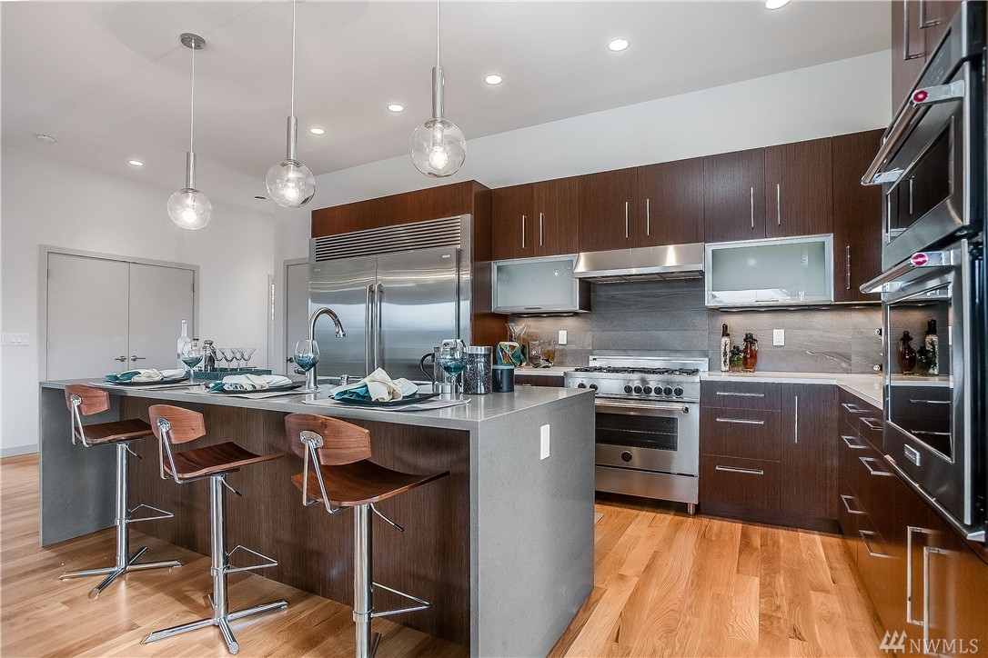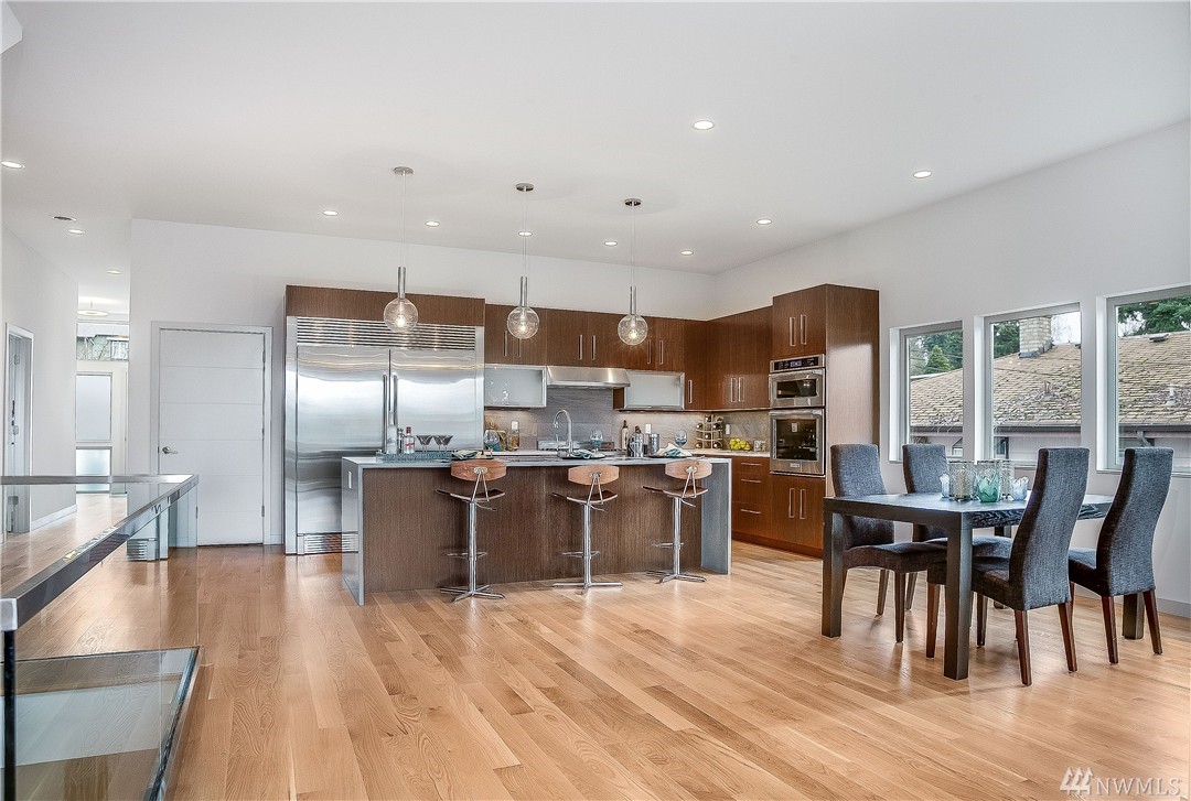 Stunning New Modern by Greatwood Homes! Level entry opens up into superb great room & gorgeous chef’s kitchen w/top of the line appliances: Bertazzoni, Electrolux, Bosch & Kitchen Aid. 10’ ceilings, real hardwoods, radiant heat, 5 Bedrooms & 3.5 baths. HRV system, 2 large decks & patio overlook beautiful yard w/mountain top views & sunny SW exposure. Enjoy long walks around this fabulous Broadview neighborhood! Garage 420SF, Upper Deck 180SF & Main Level Deck 180SF. Membrane roof
