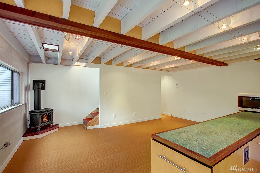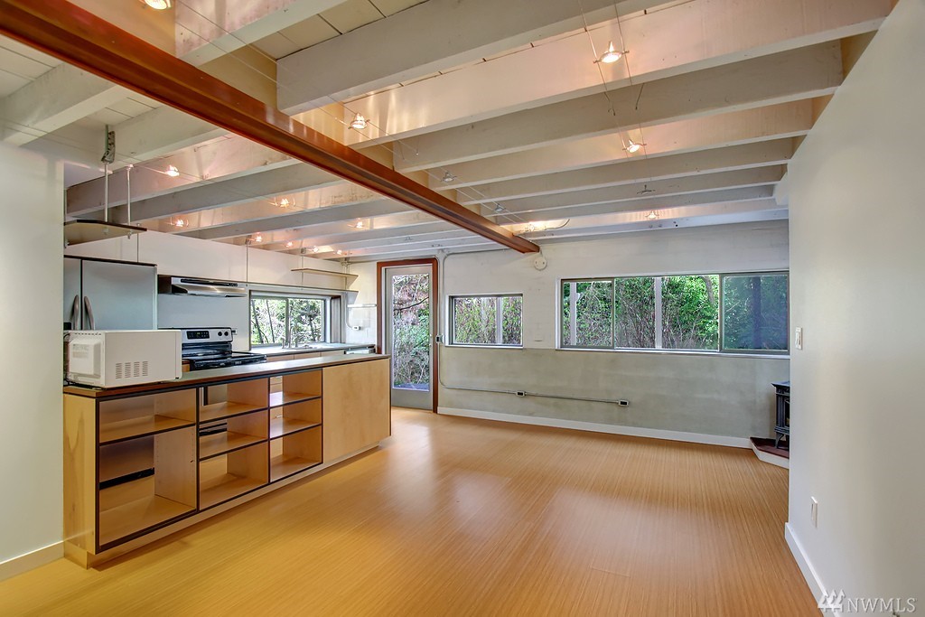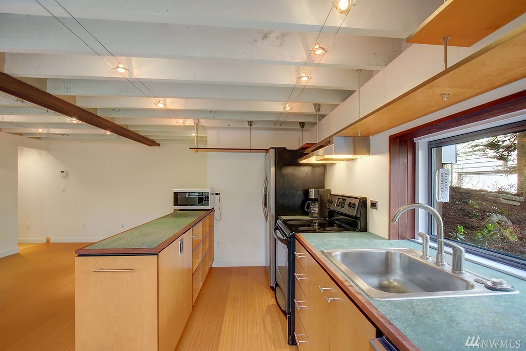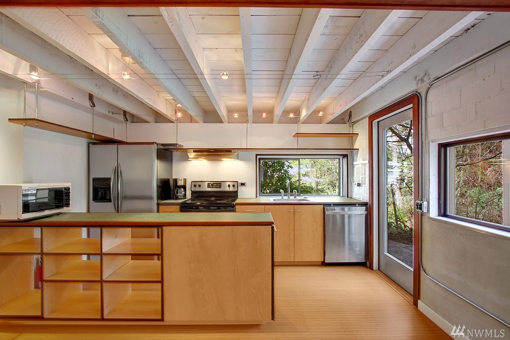 Adorable brick & wood cabin circa 1945 tucked away in North Beach. The reverse flr plan has bedrm, walk in clst & fll bth up. "Great Room" is on the LL. Updated open kit is the hub of entertaining next to lrg liv rm w/ gas stve. Enjoy cverd patio BBQ & din alfresco. Sit & enjoy the calm natural setting w/ soothing sounds of the babbling creek wafting from below. Perfect "Pied a Terre" to enjoy Seattle. Or...live simply & enjoy Ballard." Associate Membership" to North Beach Club avail.