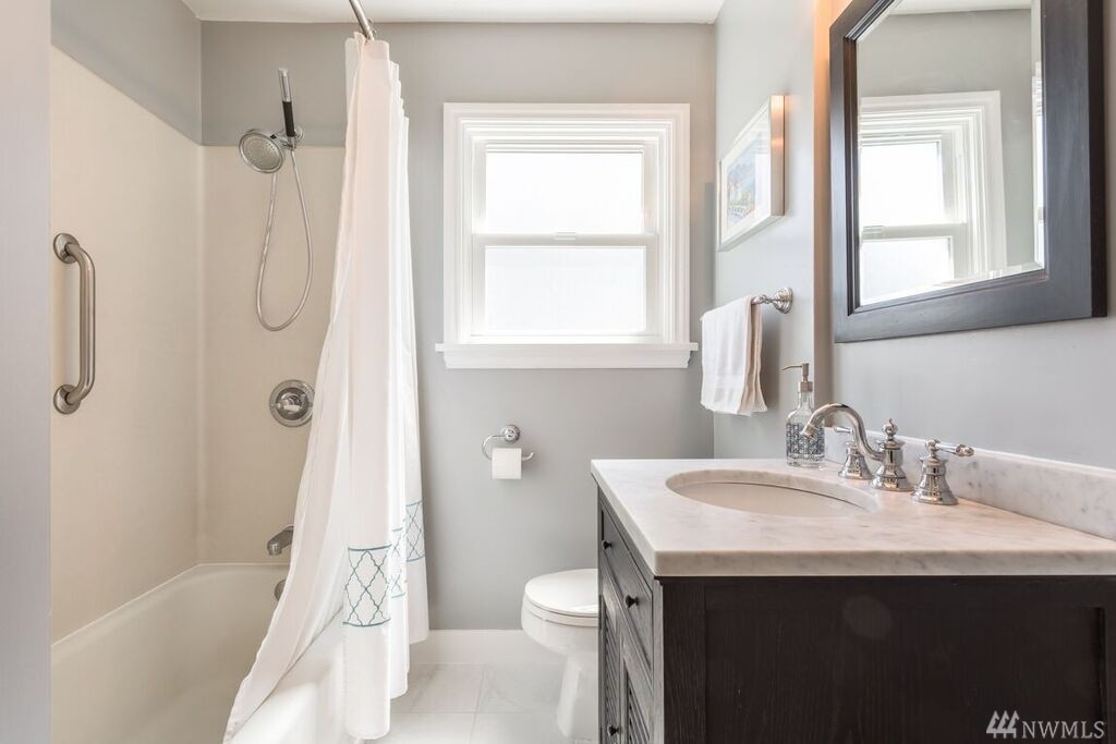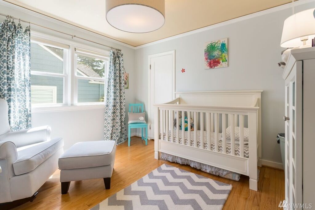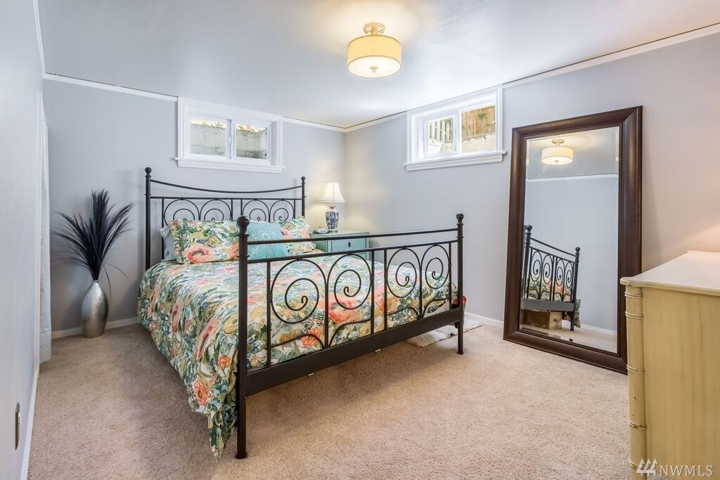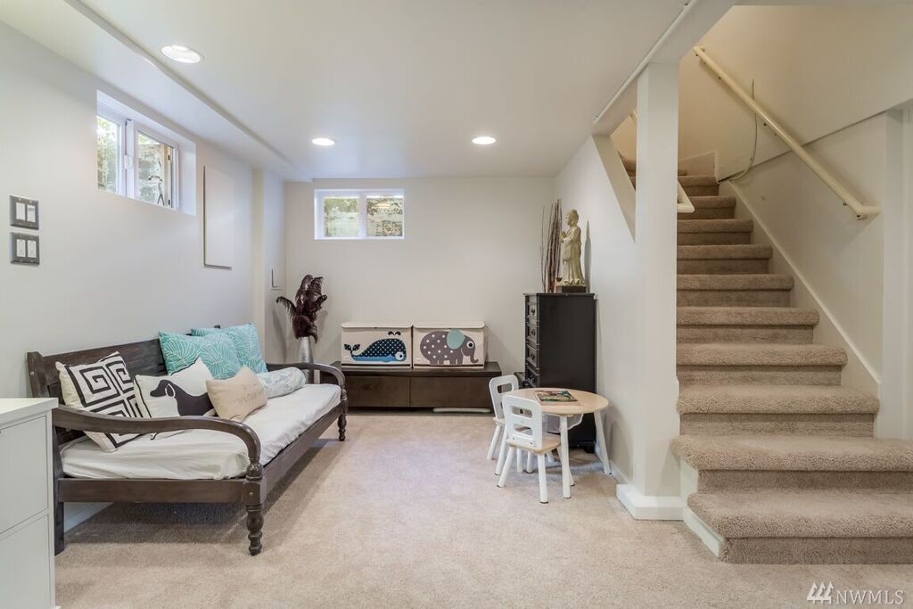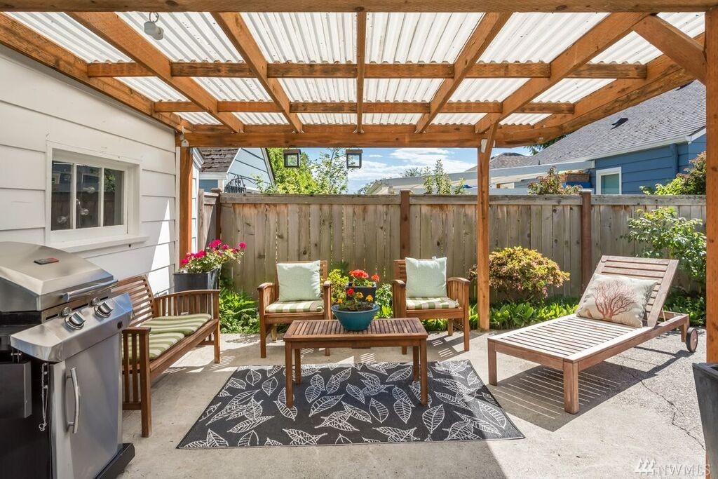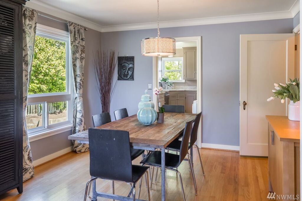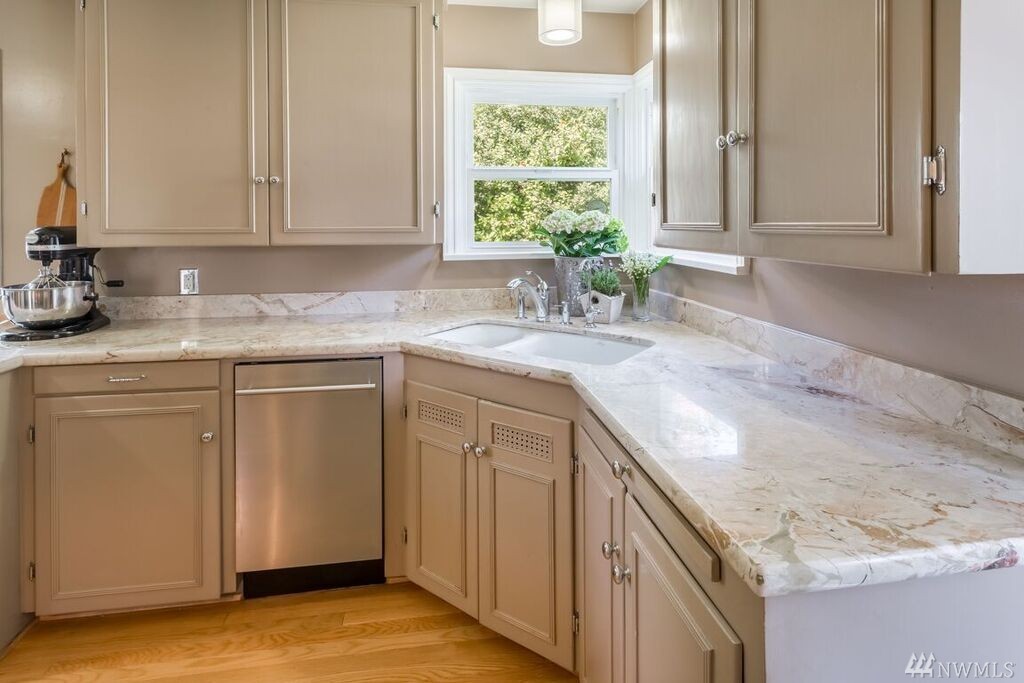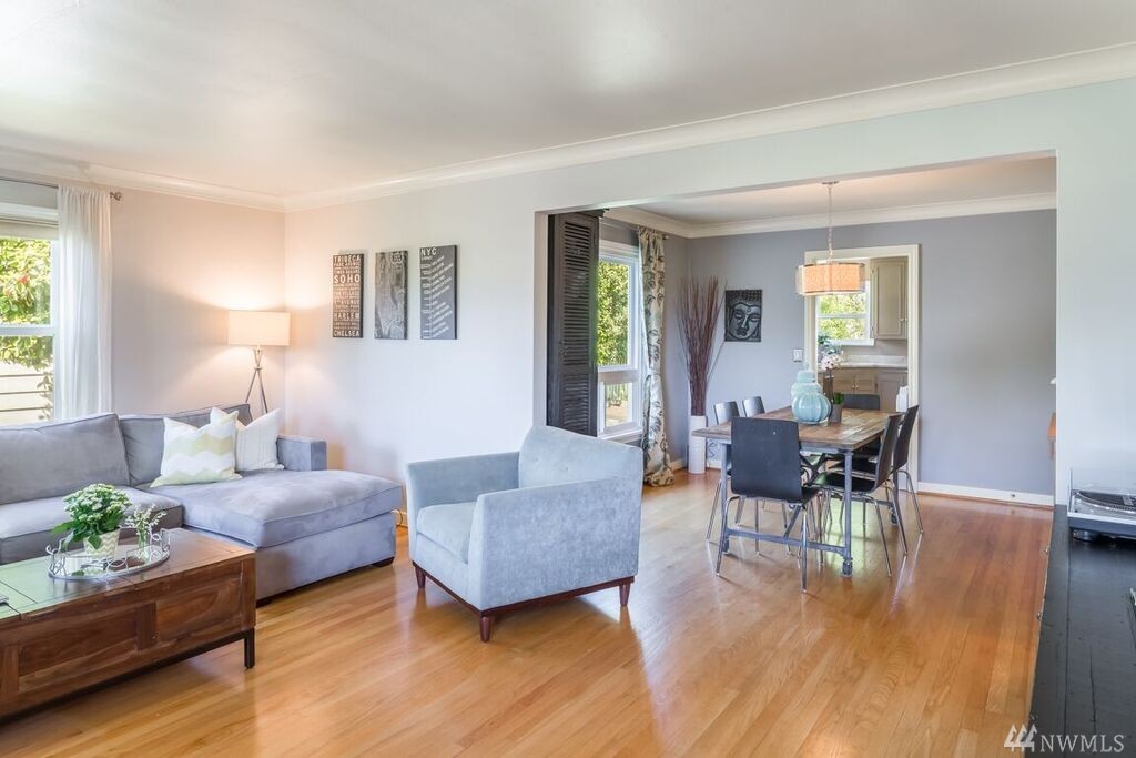 Charming Sunset Hill Cape Cod on one of the most coveted streets in Ballard. Main floor hardwoods, gas fireplace, updated windows, newer roof. Marble counters in kitchen with new stainless appliances including a Blue Star gas range. Lower level family room, bdrm, 3/4 bath, new carpet, laundry and an abundance of storage. Private backyard fully fenced, covered patio, raised beds and a mature apple tree providing buckets of apples PLUS peek-a-boo view of Mt Rainier. 1 car garage, covered carport.
