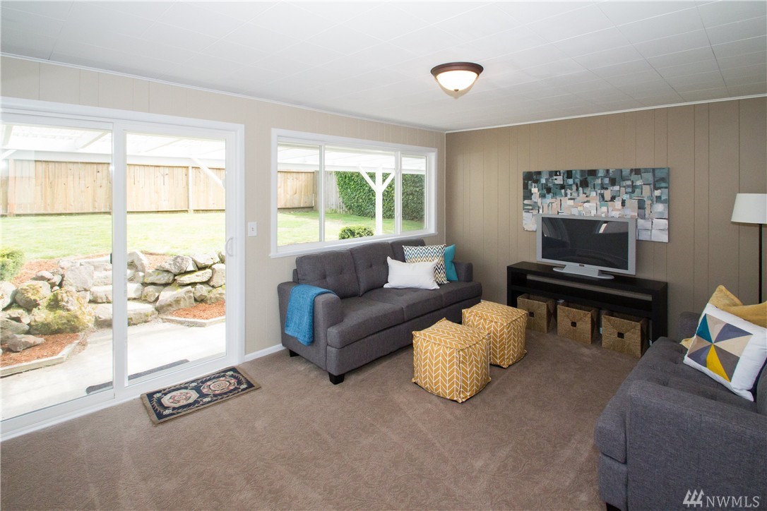 Very SWANKY rambler in just the right location @ Sunset Beach. Shined up and ready for new owners. This home offers a peekaboo view. EZ walk to Chambers Bay rec area w/golf trails & beach access. You will appreciate the vinyl windows, new tiled bath w/ heated floors, & family room off the remodeled kitchen. The garage is double deep + a 10'x12' heated craft room. Out back enjoy the covered deck, fire pit area and Koi pond. Large, fenced yard in back and access possible from Grandview.