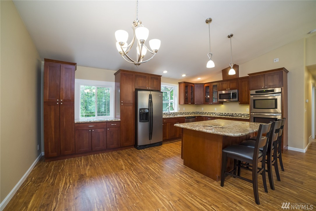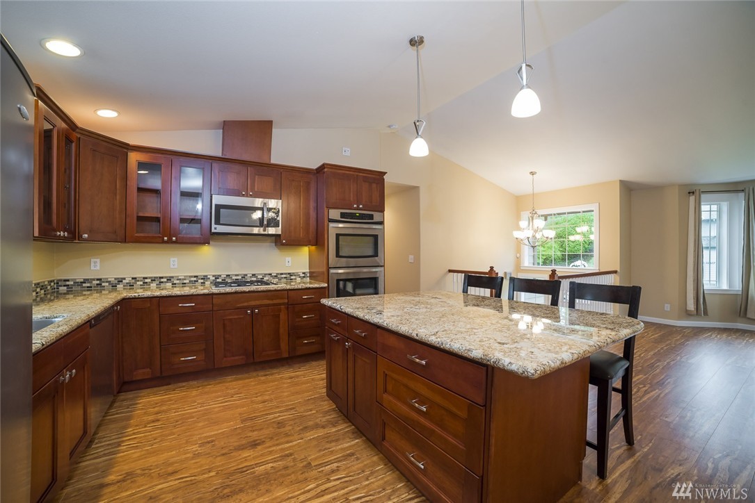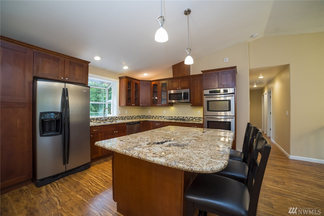 Stunning house on large lot that backs a greenbelt! Located within the Lake Stevens school district, this split level 4 bedroom, 2.75 bath home has been completely remodeled and no detail was left out. New exterior paint, beautiful cabinets, granite counter tops, stainless steel appliances, and tasteful tile back splash. Glass slider on lower level leads to oversize deck with awning. No carpet for easy cleaning, separate utility room, landscaped yard, RV parking. This rare find won't last!