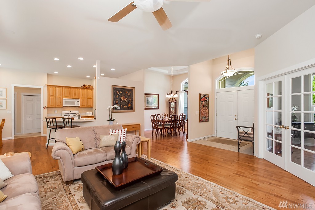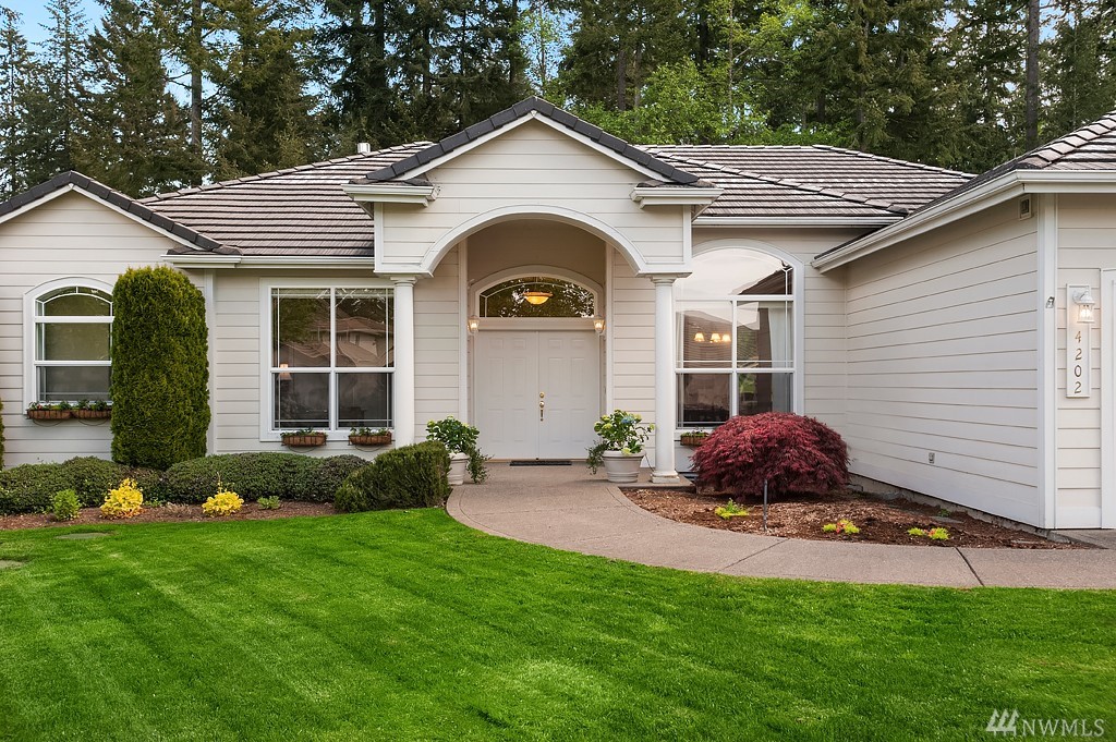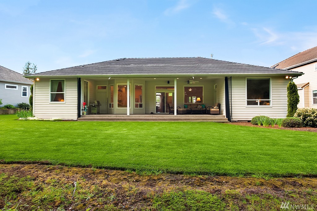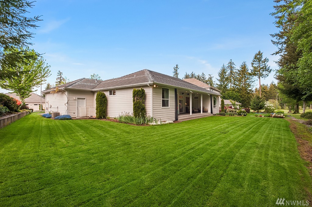 Beautifully landscaped one level home tucked back off the 9th hole at The Golf Course at Hawks Prairie. Featuring an open floor plan with 3 bedrooms 2 baths, expansive master suite, and tall ceilings throughout. The home is perfectly situated on a level lot, with tranquil views of the course. Lots of extras: Central A/C, large 3-car garage with space for a workshop and storage, and covered patio plumbed for gas. Located a few miles north of Olympia, and just south of Joint Base Lewis-McChord.
