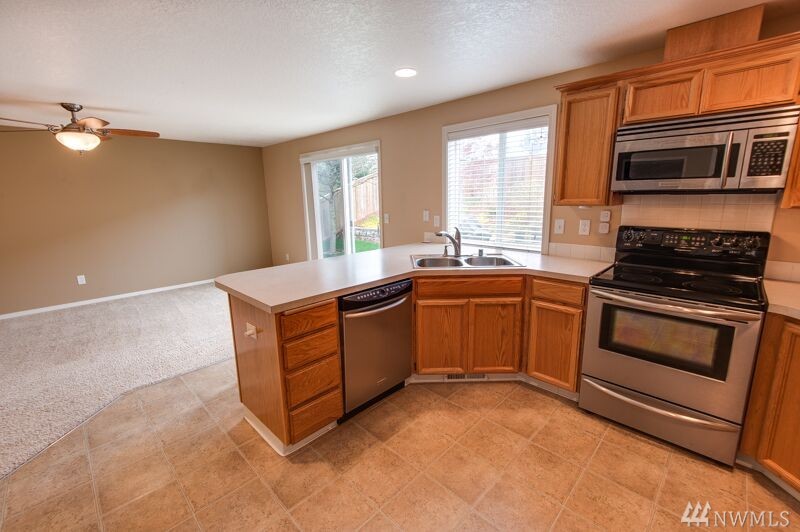 This home just may have it all! Spacious 4 bedrooms with a fully fenced backyard. Kitchen boasts plenty of counter top space, SS appliances, large pantry, and lots of cabinet space. 5 piece master bath with jetted tub, perfect for soaking after a long day. Quiet, well-maintained, neighborhood w/park and walking trails. Freshly manicured landscaping with brand new, luscious grass. Shed stays for all your gardening tools. Minutes from I5, Tolmie State Park and shopping!