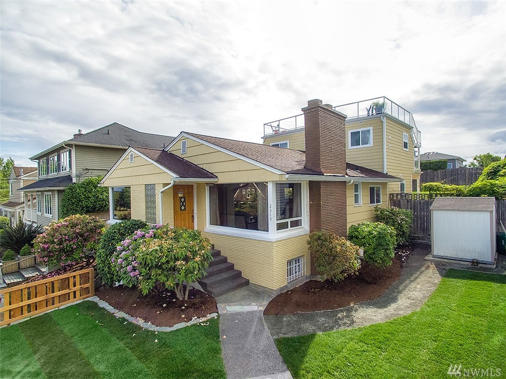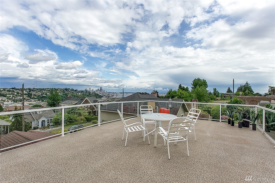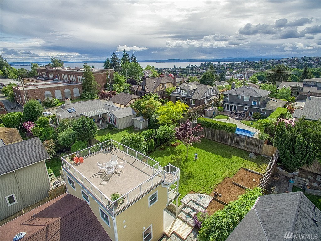 Can't beat the view or location! Enjoy views of the Space Needle, Mt Rainier, Puget Sound, Cascades. Amazing rooftop deck with 360 degree views! Professionally landscaped yard on spacious 7680 sq ft lot, fully fenced, water feature, planting beds. Close to downtown, SLU, QA/ Ballard. 1 block to Ella Bailey Park and new elementary. Walk to shops & restaurants in the Magnolia Village. Lots of potential: build out your dream kitchen, finish off the basement, or create a 2nd master suite upstairs.