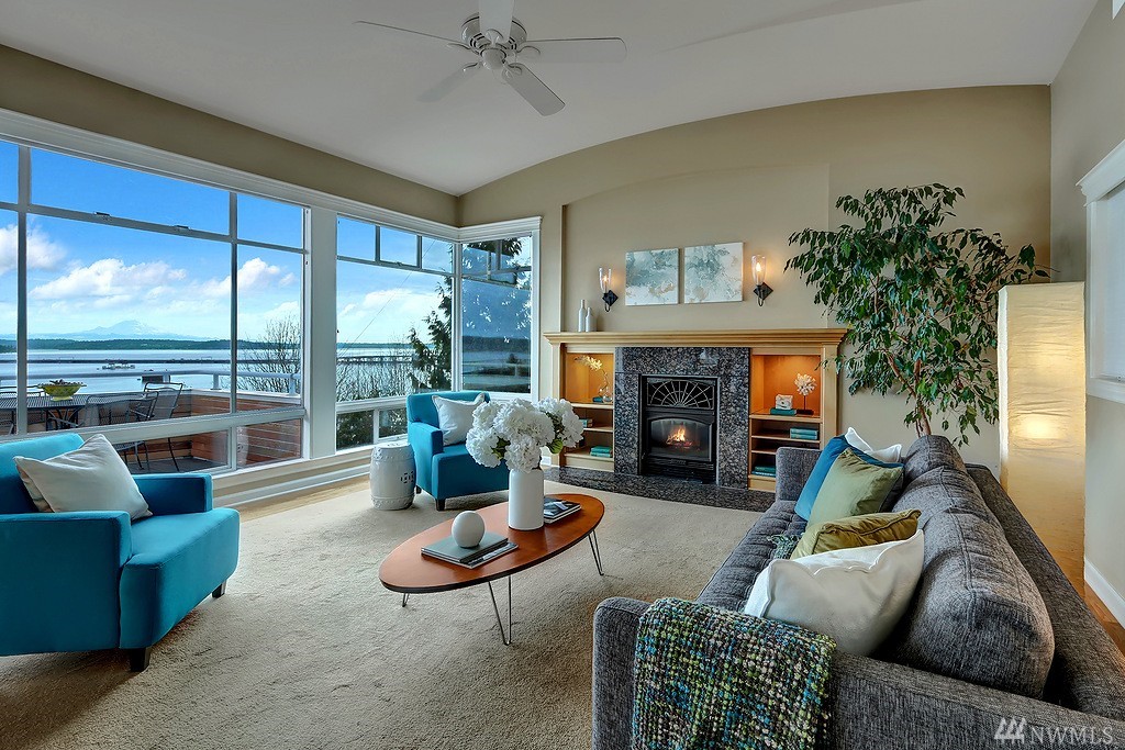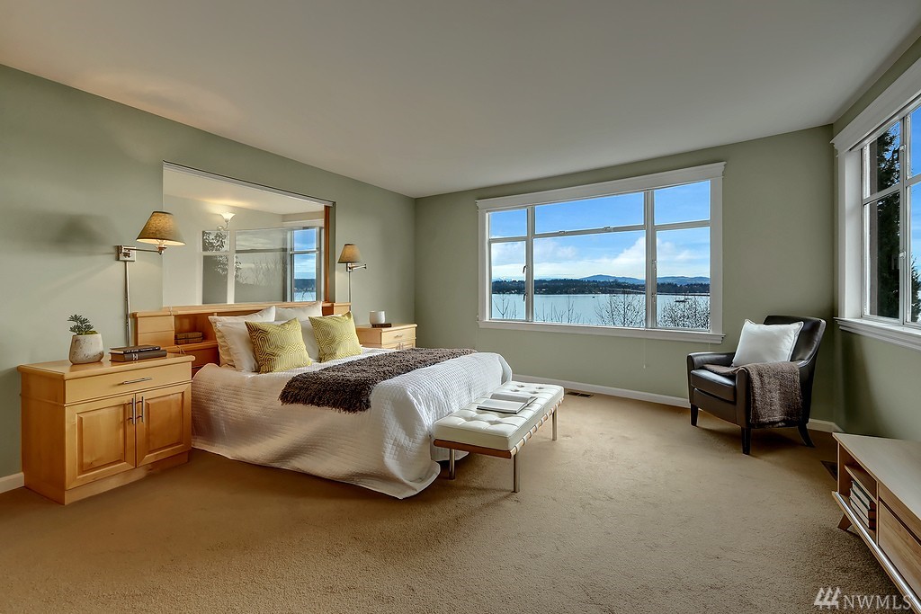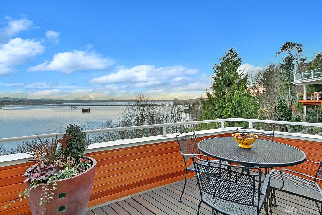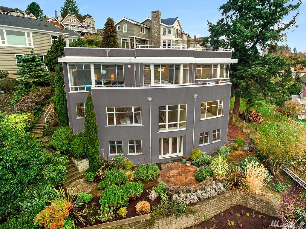 Breathtaking NW contemporary AIA award winning home is situated on a private drive with panoramic views from Mt. Baker to Mt. Rainier. With all living spaces oriented to views, this home offers amazing entertaining spaces. The ironwood rooftop deck gives a sense of never ending skies & water. All bedrooms are on the mid level, including a master suite, also with outstanding views. A daylight basement offers many options & accesses a view patio. 2-car attached garage. Beach Club available.