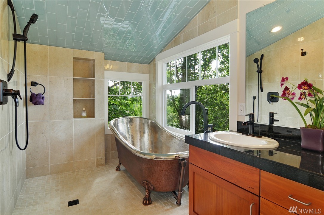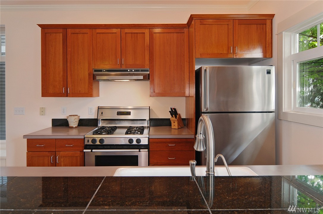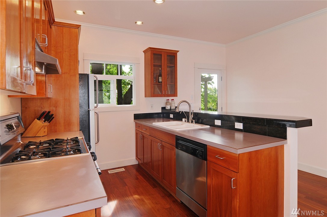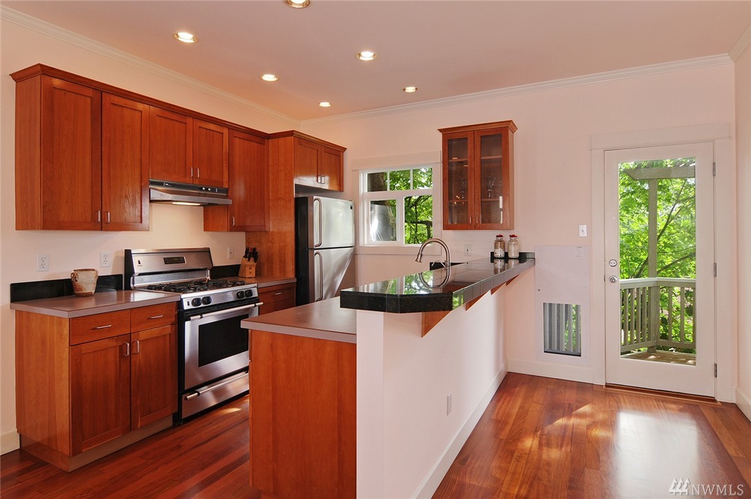 Wonderful stand-alone home with enchanted tree-house feel. Brazilian cherry, gas cook & fireplace, pet door, deck off kitchen. Lower level with spacious bedroom w/ full bath & entrance from garage. Magnificent master with Nursery/office/2nd bedroom on the same floor. Master bath, copper soaking tub, huge walk in shower, views. Established neighborhood. Well known for its high walk score, local farmers market just blocks away, new restaurants, coffee shops. Close to freeways, downtown & bridges.