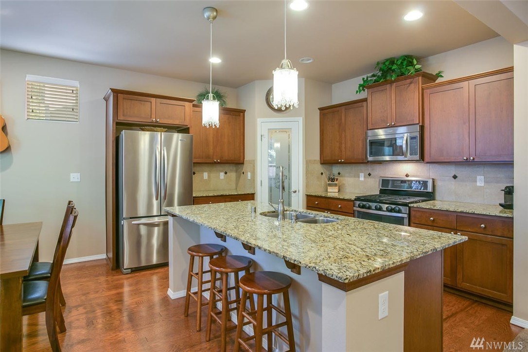 Beautiful 4 bedroom, 2.5 bath + Den, East facing, craftsman home in the desired Parkwood Place neighborhood in Kirkland. Feels brand new, built just 3 years ago. Functional and open floor plan, two car attached garage, gas fireplace, gleaming hardwood floors, slab granite counters in the kitchen, and S/S appliances. Home located at the end of the cul-de-sac right next to the community park. Walk to shopping & restaurants. Just north of Evergreen Hospital with easy I-405 & Metro Transit access.