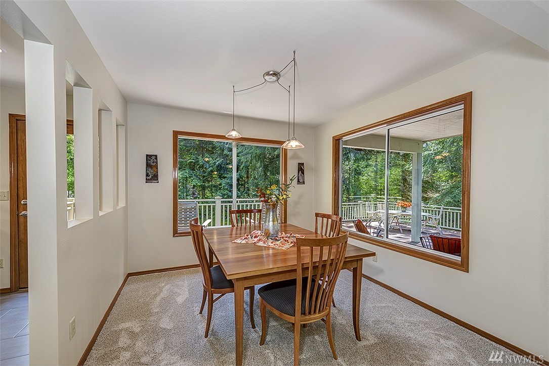 Must see to appreciate stunning split level home & detached 1200 sqft shop. 20 min to MS/Redmond. 3 BR home upstairs. Another BR, bath, den, FR, kitchenette with dining space, laundry & large storage room on ground floor. All new carpet & paint. Large deck. Adjacent to extensive trail system. Insulated, heated shop on back of lot, accessed from separate driveway. DO NOT USE GPS. Must access from Ames Lake-Carnation Rd NE to NE 52nd St. (a private rd) to 298th Ave NE. Do NOT go down to Ames Lake.
