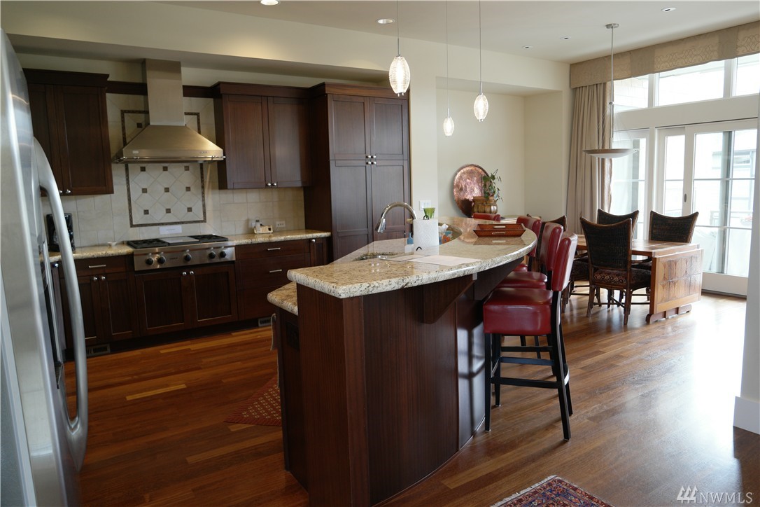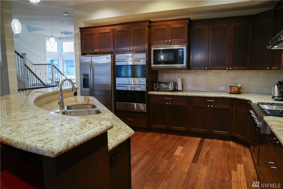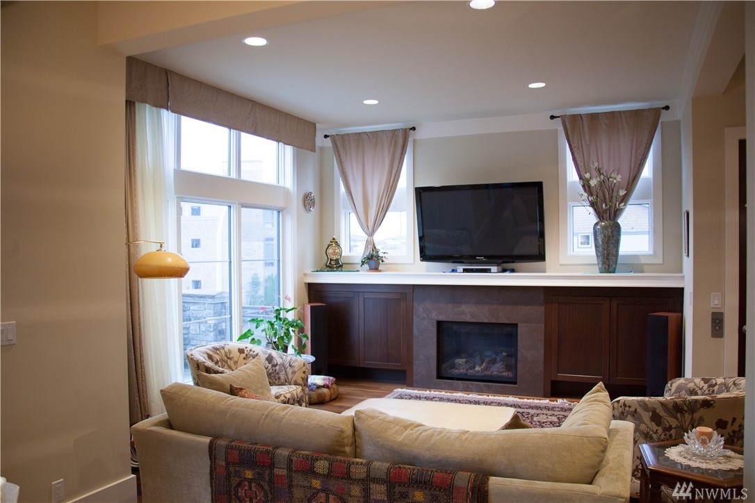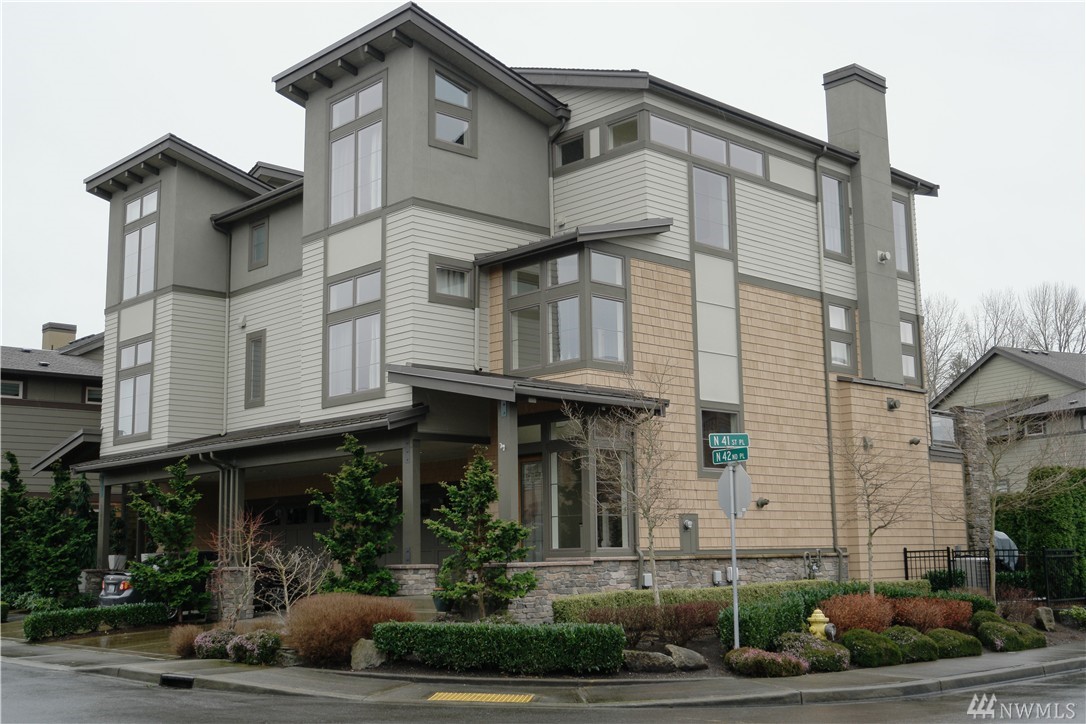 Elegant living in Barbee Mill at Lake Washington! Great room features gourmet kitchen w/Wolf ovens/rangetop, walnut floors, granite counters/bar, FP, spacious built-in cabinets, deck w/FP & view of comm. pond & lake, light filled living. Guest room w full bath. Incredible Master bed-sitting room w view, FP, walk-in closet, spa-like bath. Sunroom connecting family room to private fenced backyard. Elevator & 3 car garage. Year-round use of lakeside clubhouse, beach/dock, May Creek trails & parks.