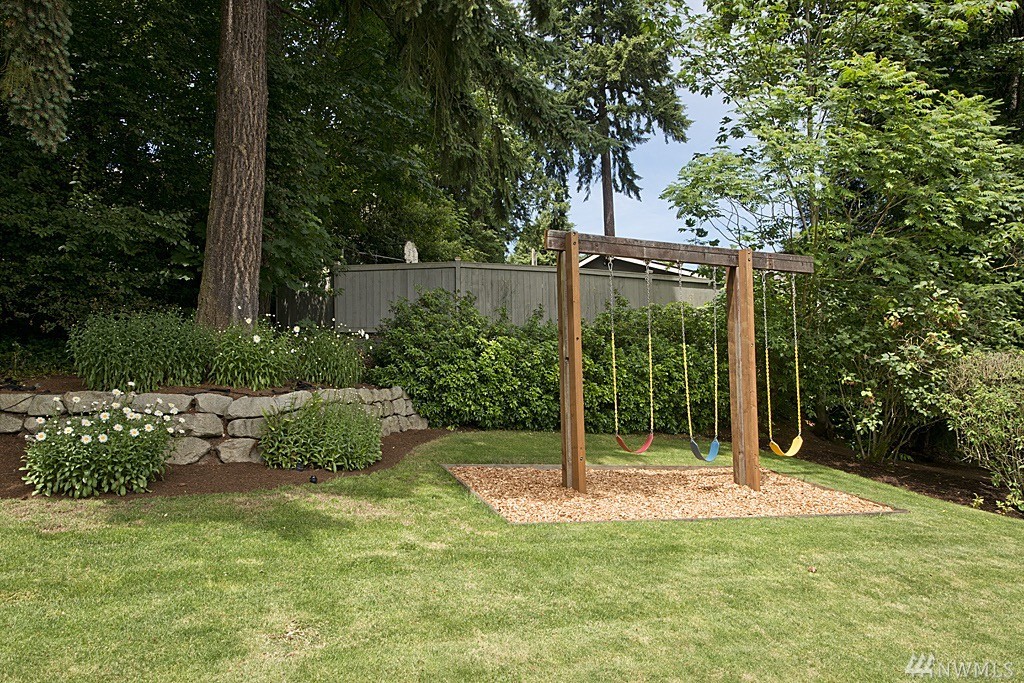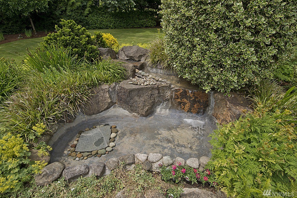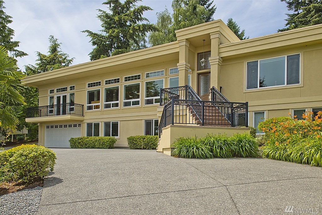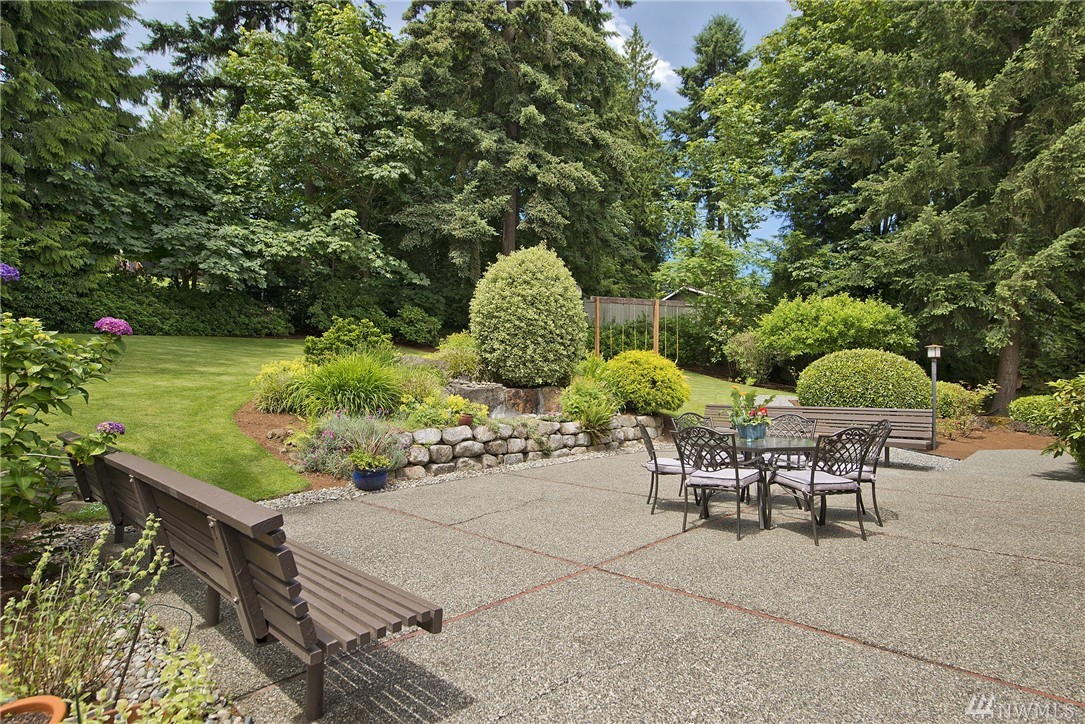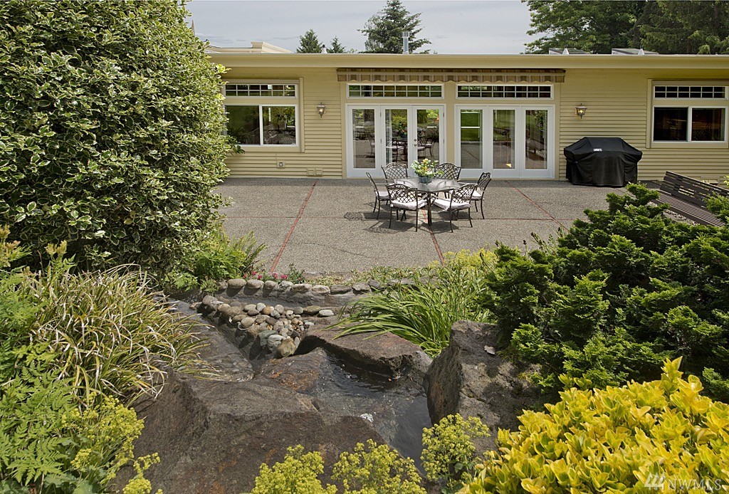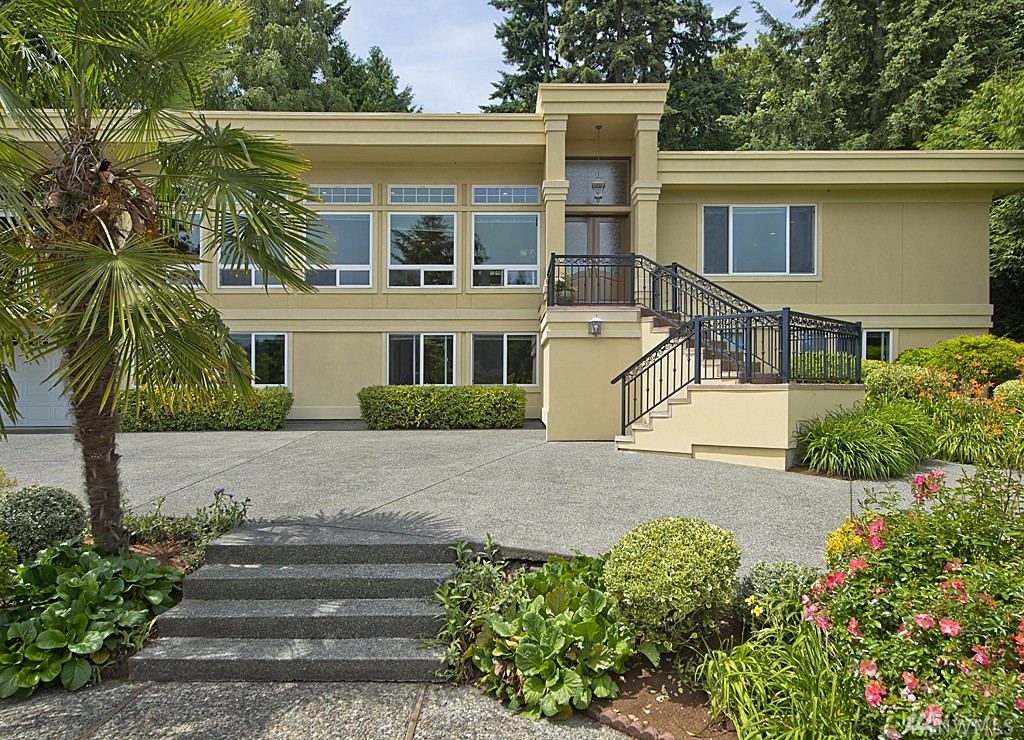 A circular drive leads to this stunning Contemporary home with 5 bedrooms and 3.5 baths. Main floor master suite plus home office, updated kitchen w/ slab granite, stainless appliances and walk in pantry. Formal living and dining rooms, family room adjacent to the kitchen, lower level bedrooms share baths and play/media room. Sited on a huge lot with a park like backyard, large patio, level play areas, built in benches, water feature, space for organic gardens. Cascade views, sunshine all day!