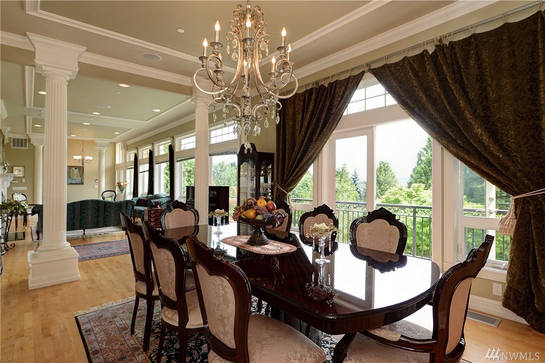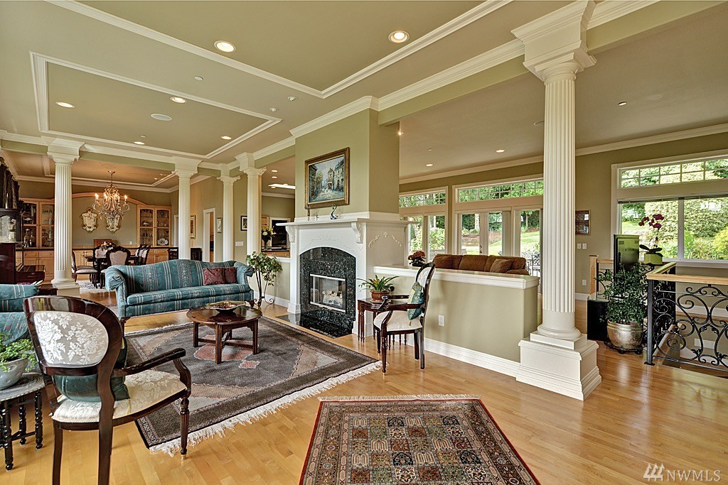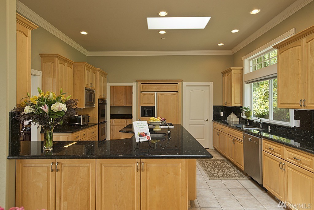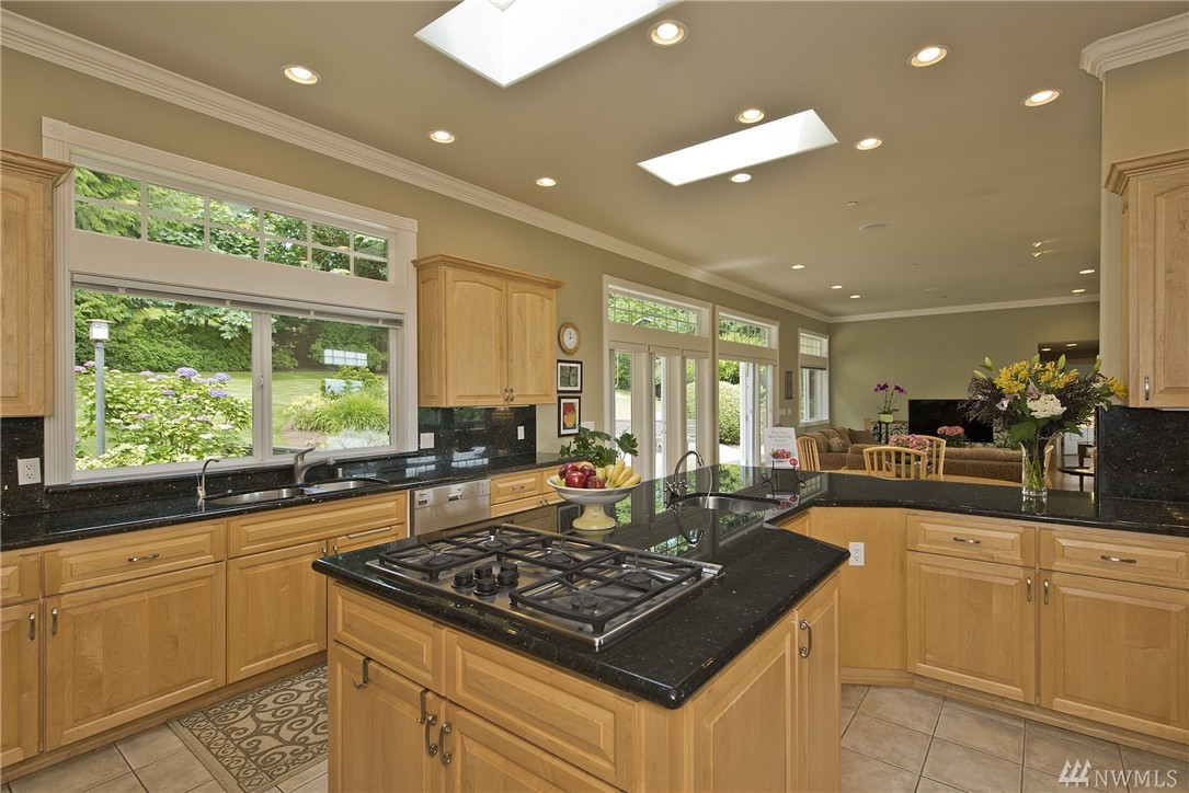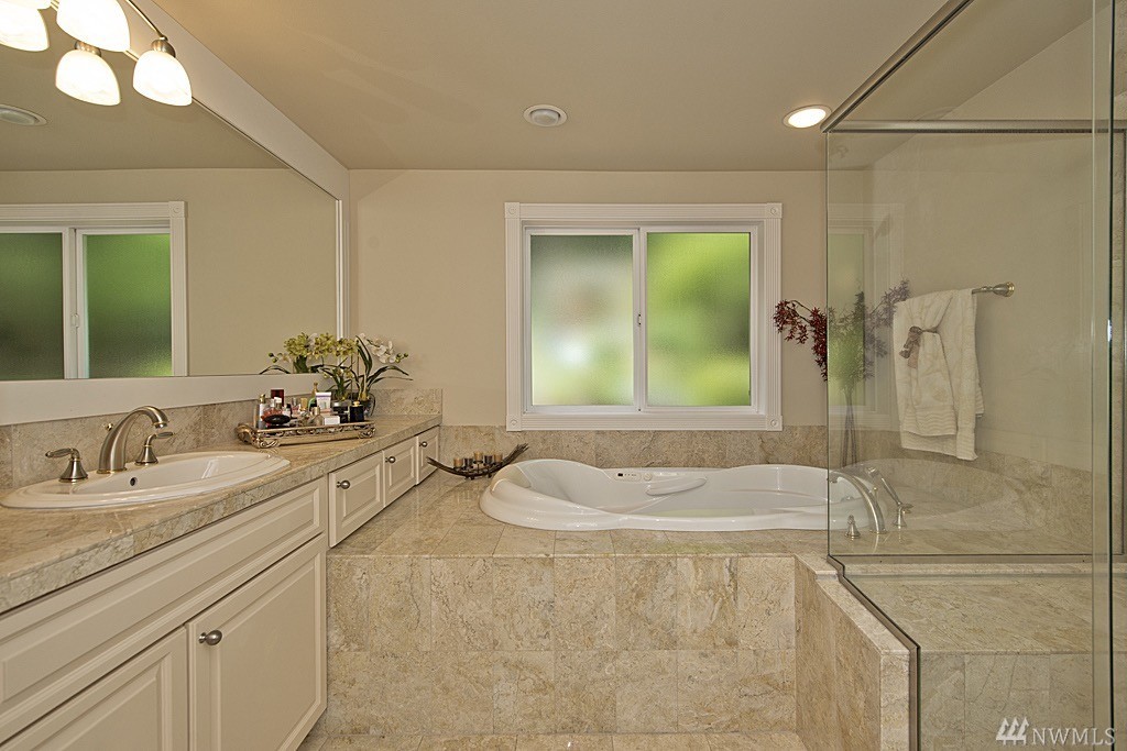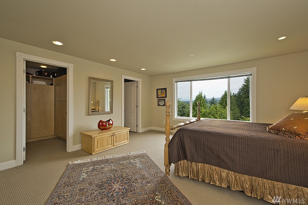 A circular drive leads to this stunning Contemporary home with 5 bedrooms and 3.5 baths. Main floor master suite plus home office, updated kitchen w/ slab granite, stainless appliances and walk in pantry. Formal living and dining rooms, family room adjacent to the kitchen, lower level bedrooms share baths and play/media room. Sited on a huge lot with a park like backyard, large patio, level play areas, built in benches, water feature, space for organic gardens. Cascade views, sunshine all day!