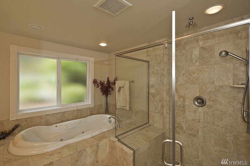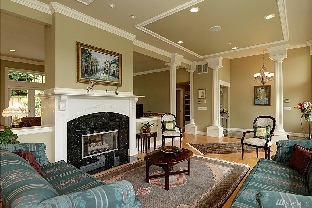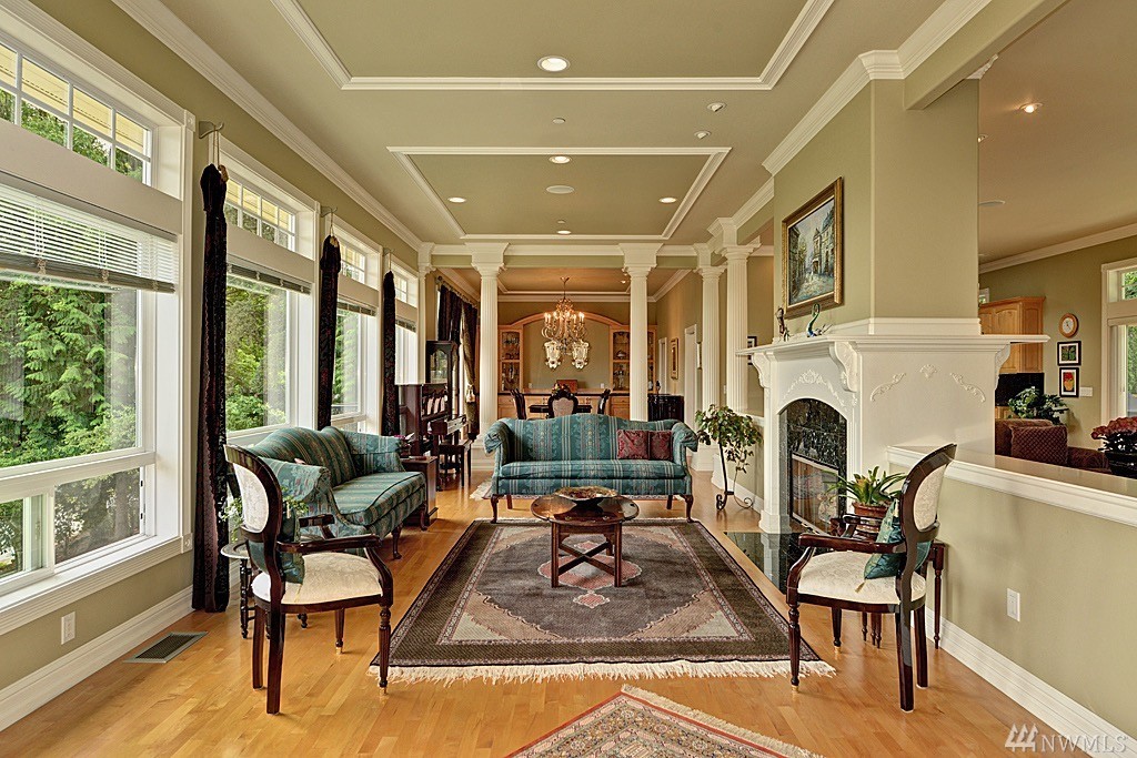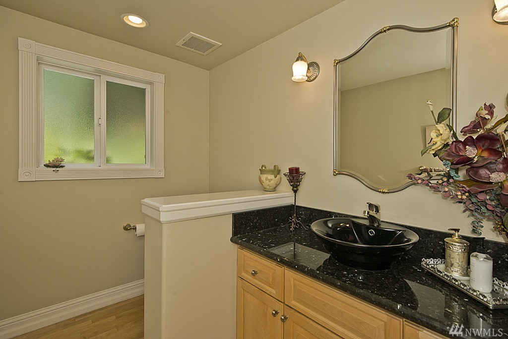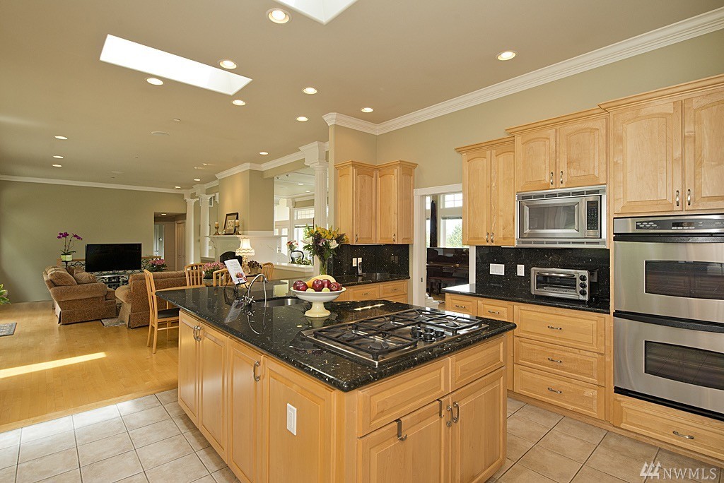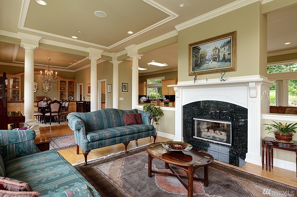A circular drive leads to this stunning Contemporary home with 5 bedrooms and 3.5 baths. Main floor master suite plus home office, updated kitchen w/ slab granite, stainless appliances and walk in pantry. Formal living and dining rooms, family room adjacent to the kitchen, lower level bedrooms share baths and play/media room. Sited on a huge lot with a park like backyard, large patio, level play areas, built in benches, water feature, space for organic gardens. Cascade views, sunshine all day!