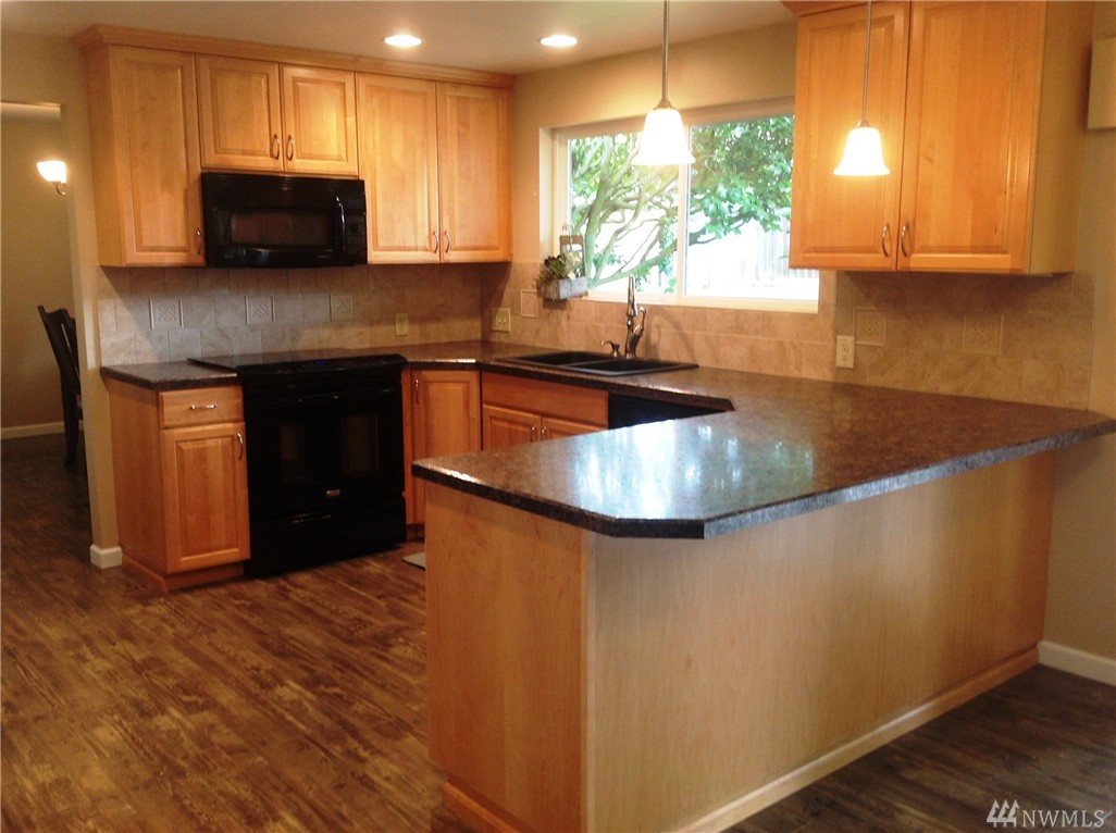 This is the one! Beautifully remodeled 3bd/2ba rambler located 5 minutes from Microsoft. New hardwood floor throughout (no carpeting), master bedroom with brand new ensuite bath, new countertops and pendant lighting in kitchen, backyard patio, fenced backyard, 2 car attached garage, security system, fabulous Bellevue schools. No HOA. Close to shopping, schools and bus line. Looks like a model home!