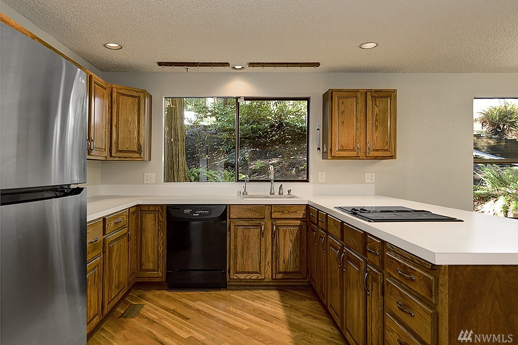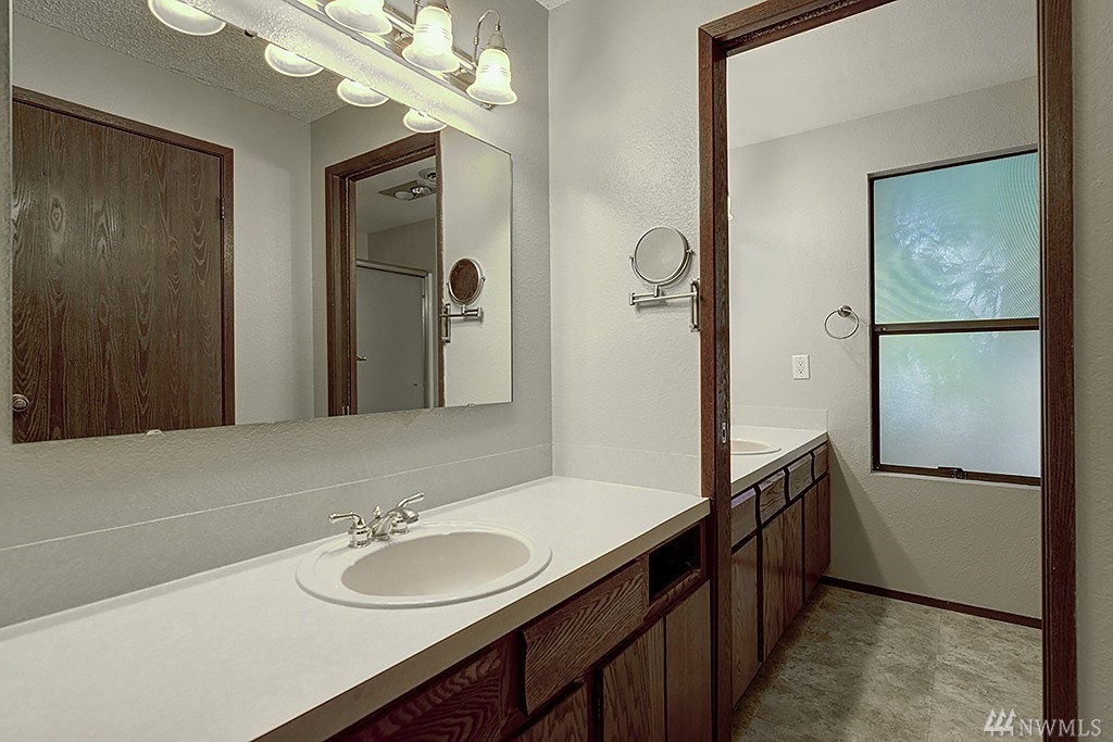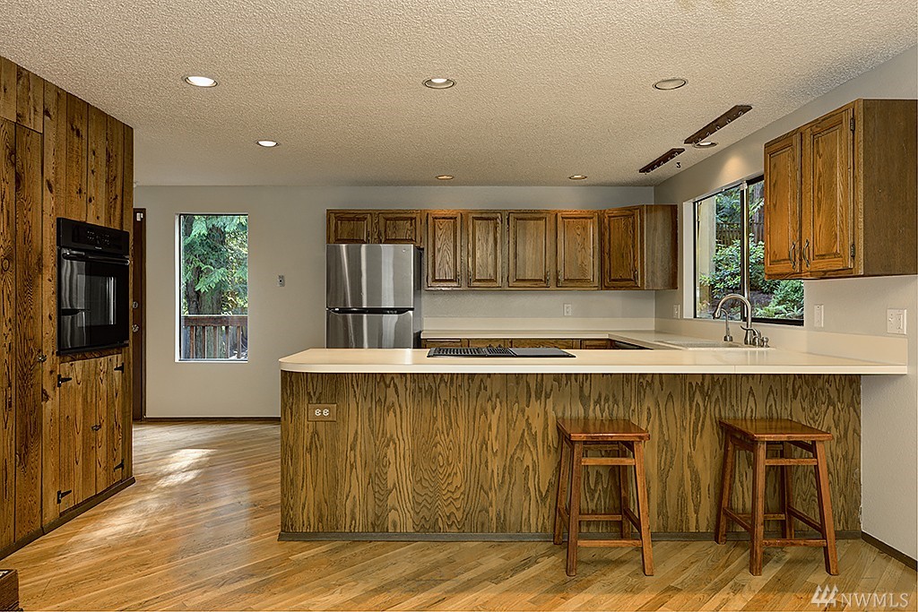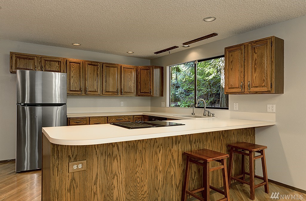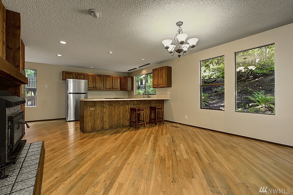 Imagine the opportunities! Charming home with large country kitchen and cozy woodstove. Master suite with double vanity. Generous rooms. Dual furnaces. Entertainment deck and covered hot tub. Private fully fenced yard with garden shed and wonderful tall trees. Squak Mountain trail corridor nearby. Minutes to commute options. Issaquah schools. Move in ready or update to your dream home.